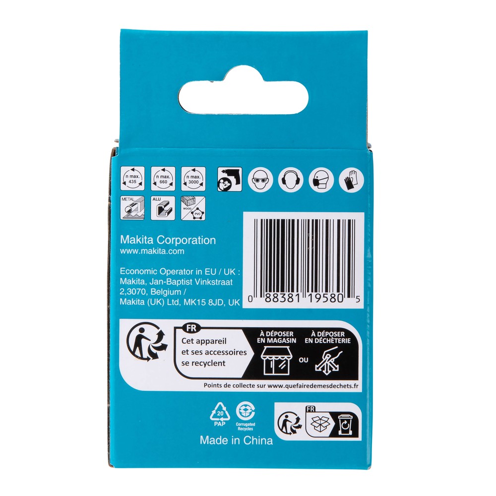 Коронка Makita D-17251 вирізняється біметалевою структурою, що поєднує гнучкий корпус зі спеціальної легованої сталі з надзвичайно міцною ріжучою кромкою зі швидкорізальної сталі. Таке поєднання матеріалів забезпечує високу ефективність різання та підвищену стійкість до механічних пошкоджень. Зубці коронки мають змінний крок, що суттєво зменшує вібрацію під час роботи, мінімізує нагрів та забезпечує плавне й продуктивне свердління навіть у твердих та неоднорідних матеріалах.