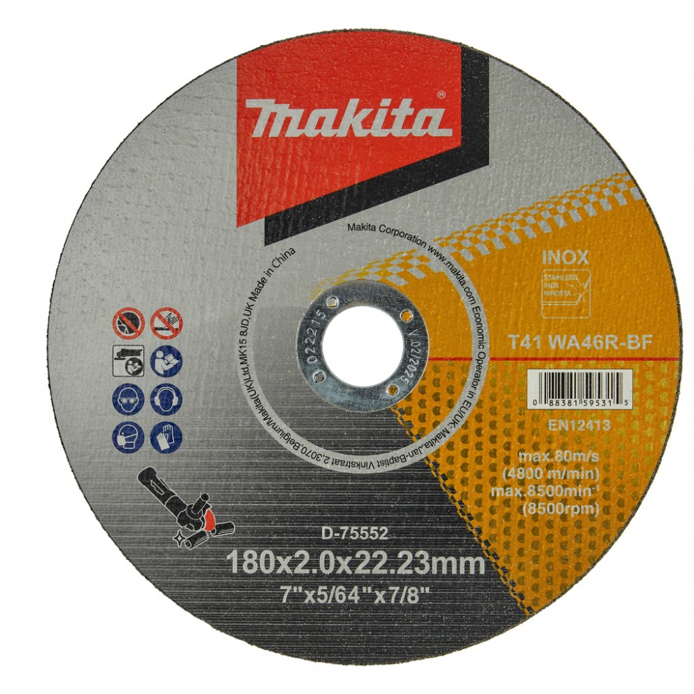 Абразивний склад диска Makita D-75552 з маркуванням 46R розроблений таким чином, щоб забезпечити стабільну роботу з твердими сплавами без ефекту "засалювання". Відсутність у складі абразиву сполук заліза, сірки та хлору гарантує, що при роботі з нержавіючою сталлю на зрізі не з’явиться точкова корозія. Диск демонструє високу стійкість до зношування, що робить його економічно вигідним вибором для великих обсягів заготівельних робіт у промисловості та будівництві.