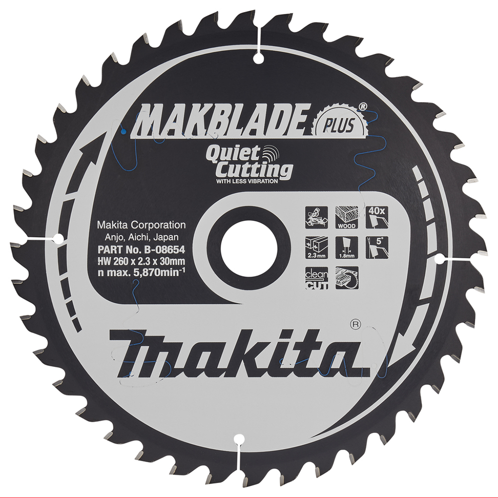 Пильний диск Makita MAKBlade Plus 260х30 мм х 40 зубців, B-08654 — точність та надійність у кожному розпилі