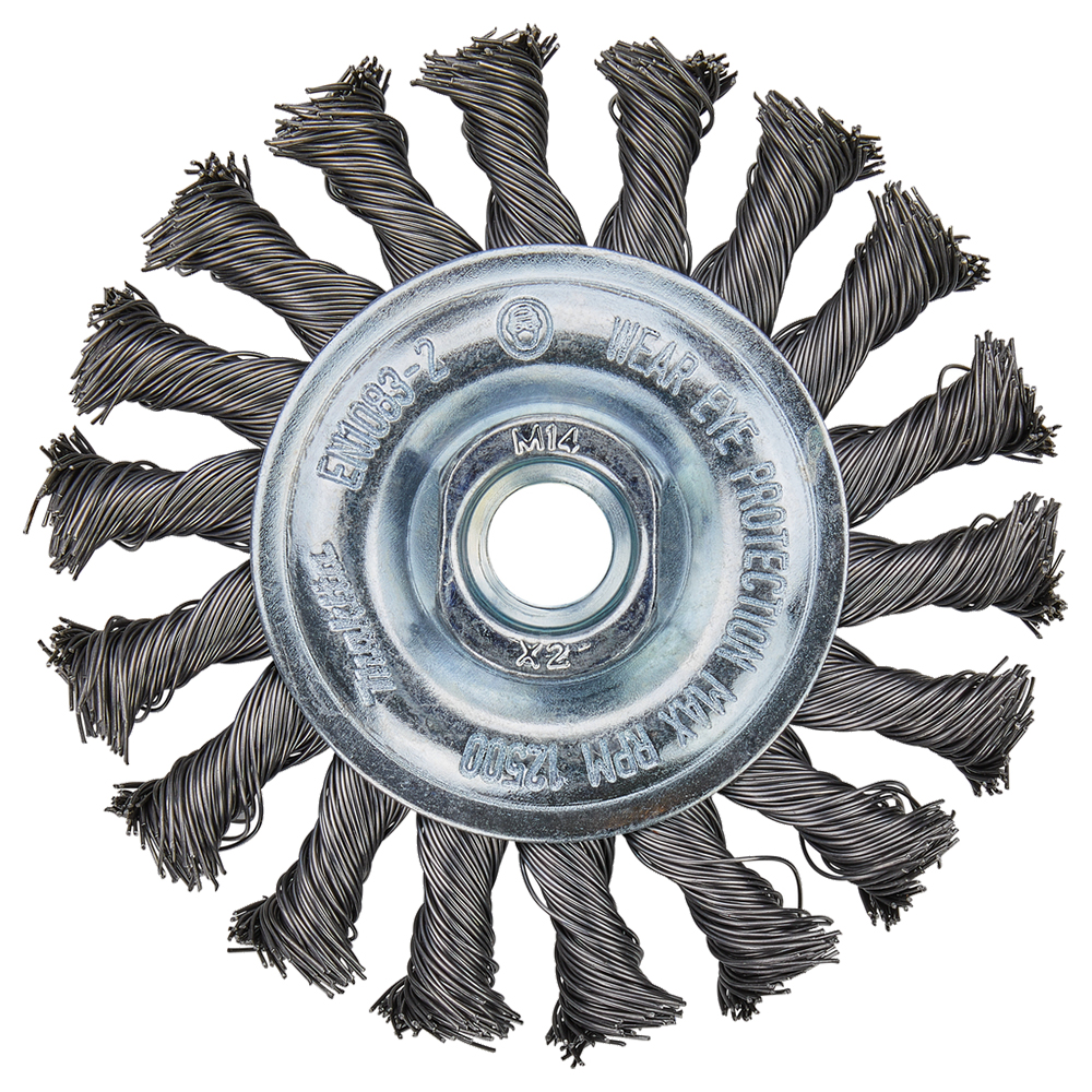 - Щітка сумісна з кутовими шліфувальними машинами (болгарками) та іншими інструментами, що мають шпиндель з різьбою М14, з діаметрами 115, 125, 150, 180, 230 мм.
