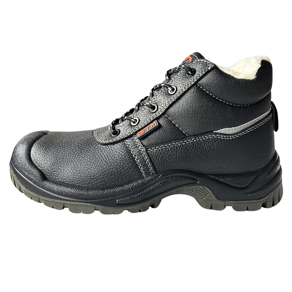 Черевики GTM SM-071W Comfort - зручне робоче взуття для використання в зимову пору року. Верх черевиків виготовлений із натуральної шкіри чорного кольору та доповнений спеціальними світловідбивними вставками. Товста підкладка зі штучного хутра дає змогу працювати за температури до -20 °С.