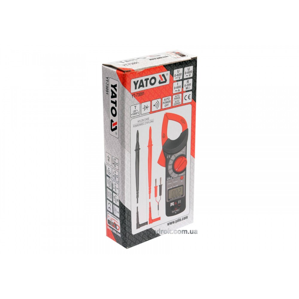 Мультиметр-кліщі YATO YT-73091 - цифровий вимірювальний пристрій, який призначений для вимірювання різних електричних величин. Пристрій оснащений вимірювальними характеристиками, які дають можливість вимірювати інтенсивність змінного струму по одному проводу методом індукції. Корпус мультиметра виготовлений із пластика, рідкокристалічний дисплей, перемикач діапазонів вимірювання. На корпусі встановлені вимірювальні гнізда та гніздо для тестування транзисторів. Цифровий пристрій оснащений вимірювальними проводами зі штекерами.