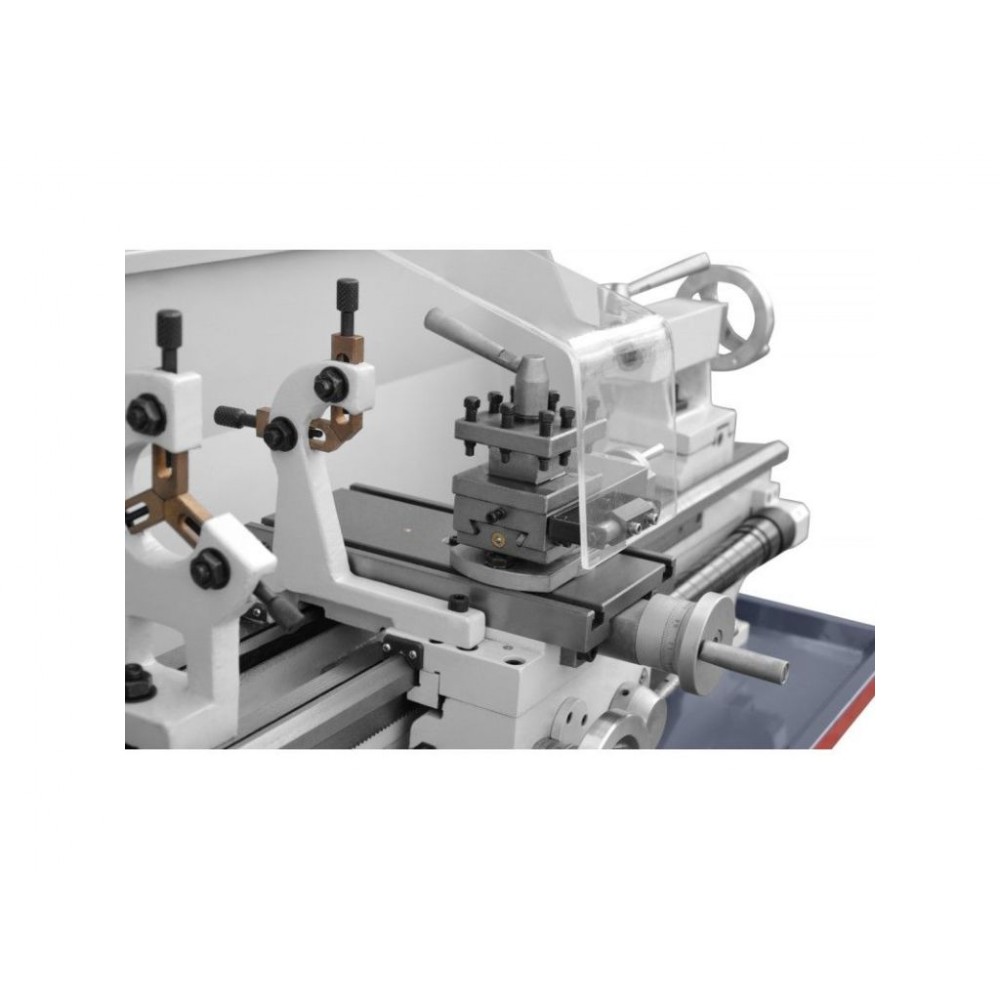 Верстат оснащений безліччю корисних функцій, в тому числі: токарна обробка 250/750 мм, 6-ступінчасте регулювання швидкості обертання шпинделя, швидкість обертання шпинделя встановлюється за допомогою потенціометра, можливість нарізування різьби, станина - напрямні індукційно загартовані та відшліфовані з металу, повідець гвинт поміщений у спеціальну кришку - відповідно до чинних вимог охорони здоров'я та безпеки, стандартів DIN та CE.