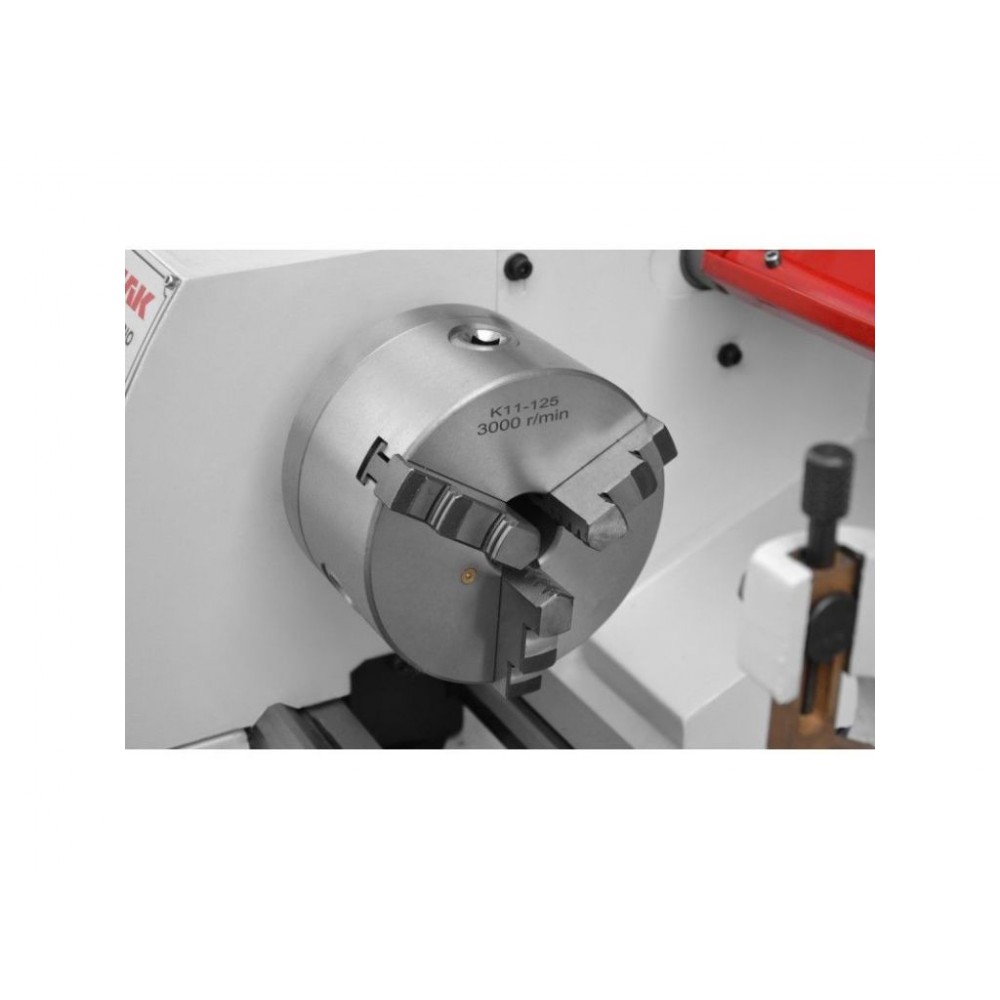 Токарний верстат має поздовжню подачу, потужний двигун 1,1 кВт, два люнети - нерухомий і рухомий, 3-х кулачковий токарний патрон, що самоцентрується, на 125 мм.