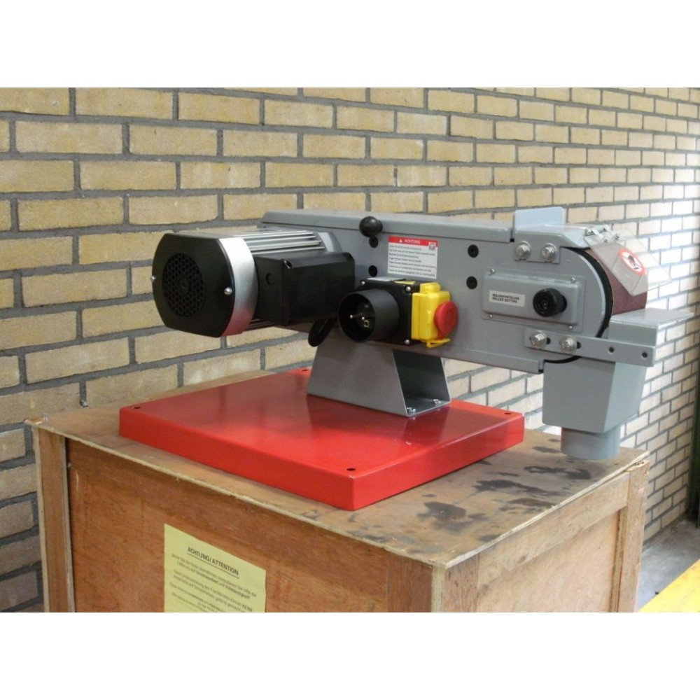 Стрічкова шліфувальна машина по металу Holzmann MSM 100L - це компактне обладнання для шліфування металевих деталей з метою видалення дефектів і надання поверхням необхідних властивостей. Асинхронний двигун потужністю 1,5 кВт забезпечує ефективну обробку матеріалів різної твердості і збереження продуктивності при високих навантаженнях. Прогумовані шківи підтримують плавність руху стрічки, а швидкість руху стрічки 19 м/с дозволяє досягти оптимальних результатів шліфування. Графітова опорна накладка зводить до мінімуму паразитне тертя.