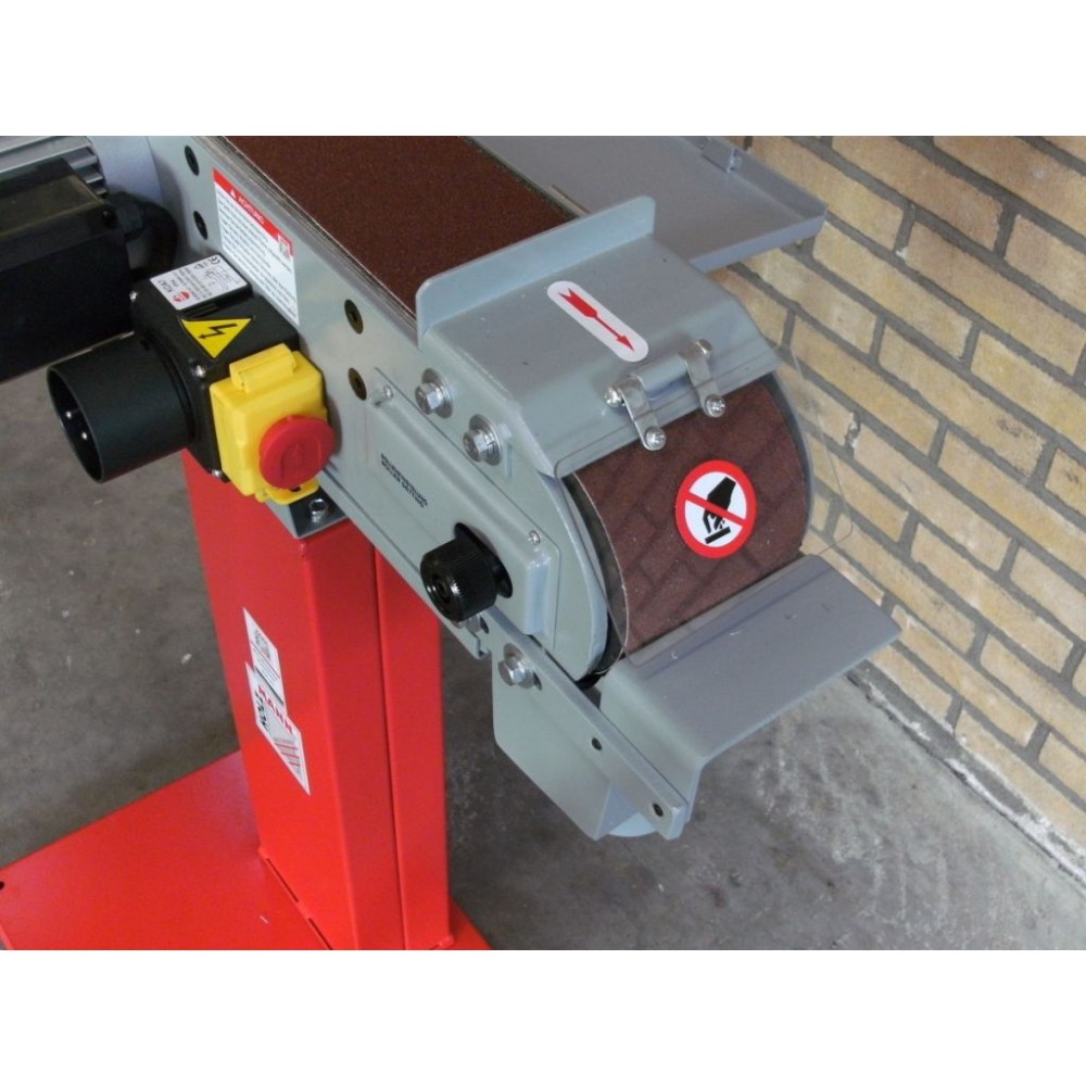 Шліфувальна стрічка має розмір 100х1200 мм. Механізм швидкого затиску дозволяє легко замінити стрічкове полотно. Широка опорна основа робить машину стійкою і стабільною, а жорсткий металевий корпус мінімізує вібрації. Якісні матеріали виготовлення і сертифікат СЄ гарантують, що ця шліфмашина стрічкова надійна у роботі і має тривалий термін служби.