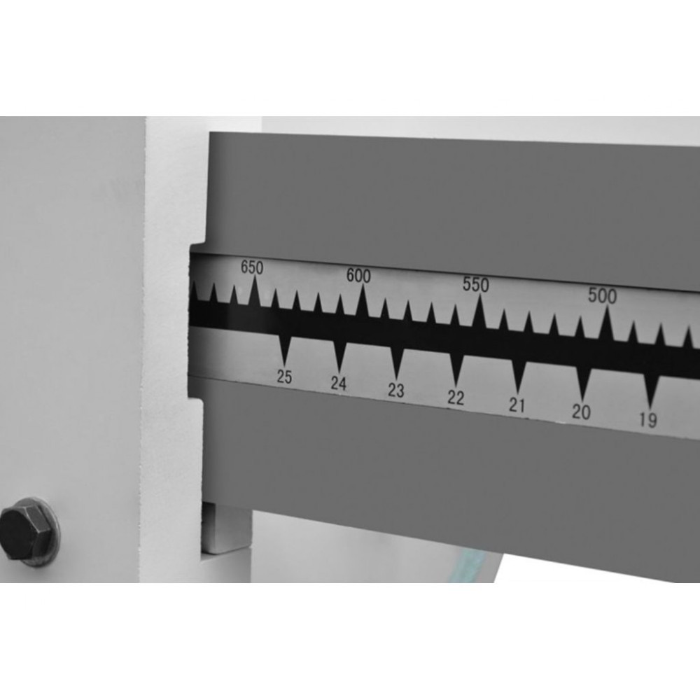 На стрічково-пильному верстаті встановлені подвійні лещата, одні використовуються для затискання при розпилюванні, другі для подачі заготовки на заданий розмір. Довжина подачі контролюється ультрафіолетовим датчиком руху, який контролює нульову точку та величину переміщення заготовки.