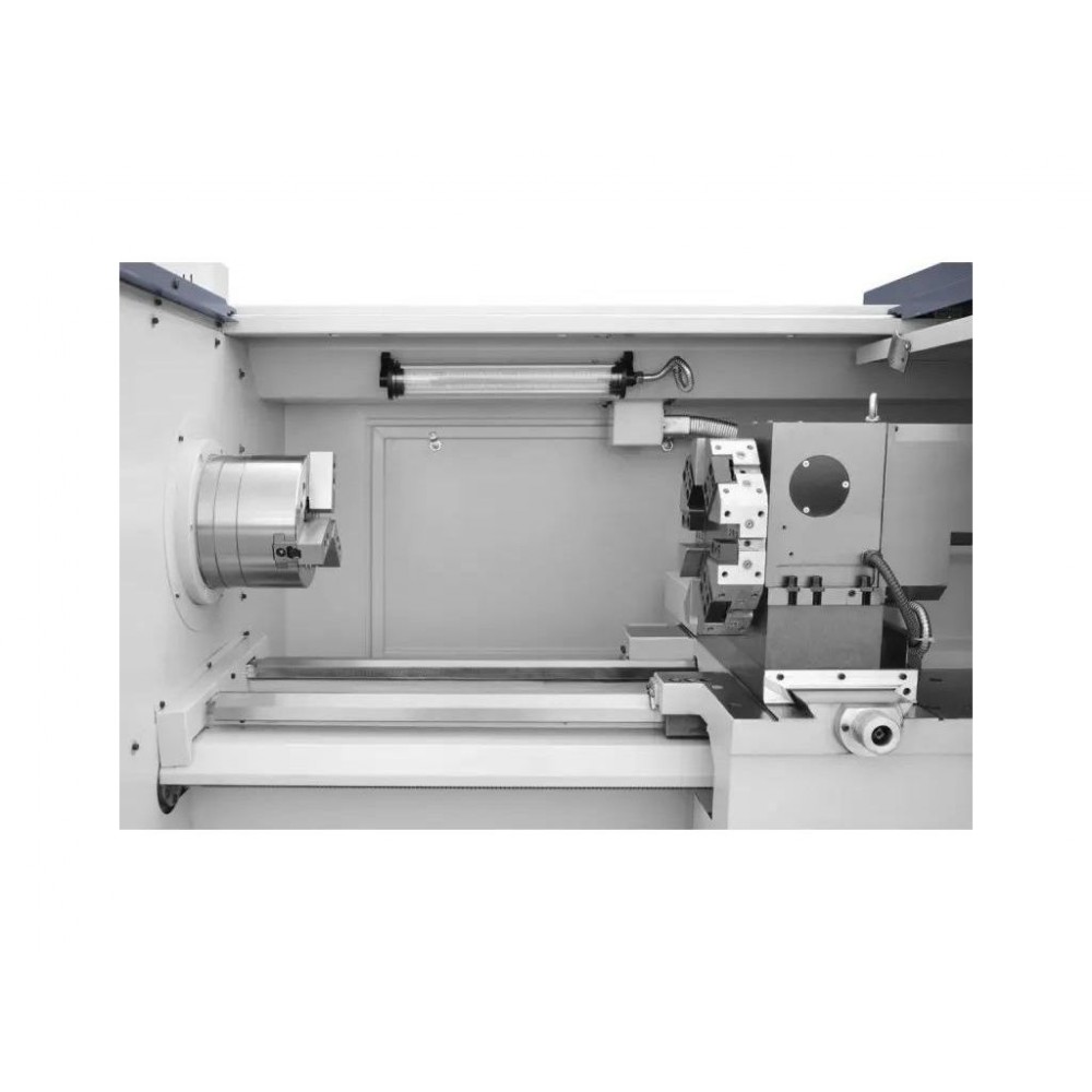 Обладнаний новітньою системою управління SINUMERIK 808D, яка надає ряд функціональних і технологічних можливостей, при цьому проста у налаштуванні і зручна у використанні. Потужність двигуна 7,5 кВт і швидкість обертання шпинделя до 2000 об/хв дають змогу ефективно працювати з різними деталями, якісно виконуючи завдання різної складності. Гідравлічна задня бабка та автоматична система змащування забезпечують плавну, безперебійну роботу і тривалий термін служби верстата.