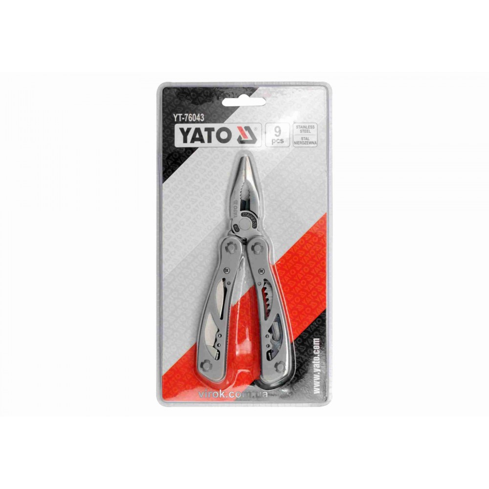 Мультитул YATO YT-76043 - універсальний розкладний інструмент з багатьма функціями, що є незамінним помічником при різних роботах в домашньому господарстві, в гаражі, на дачі і на пікніку в лісі. Виготовлений з якісної нержавіючої сталі. Поставляється в комплекті зі зручним чохлом.