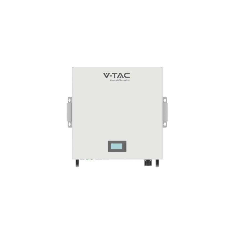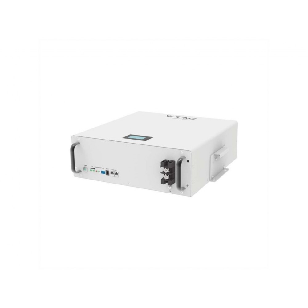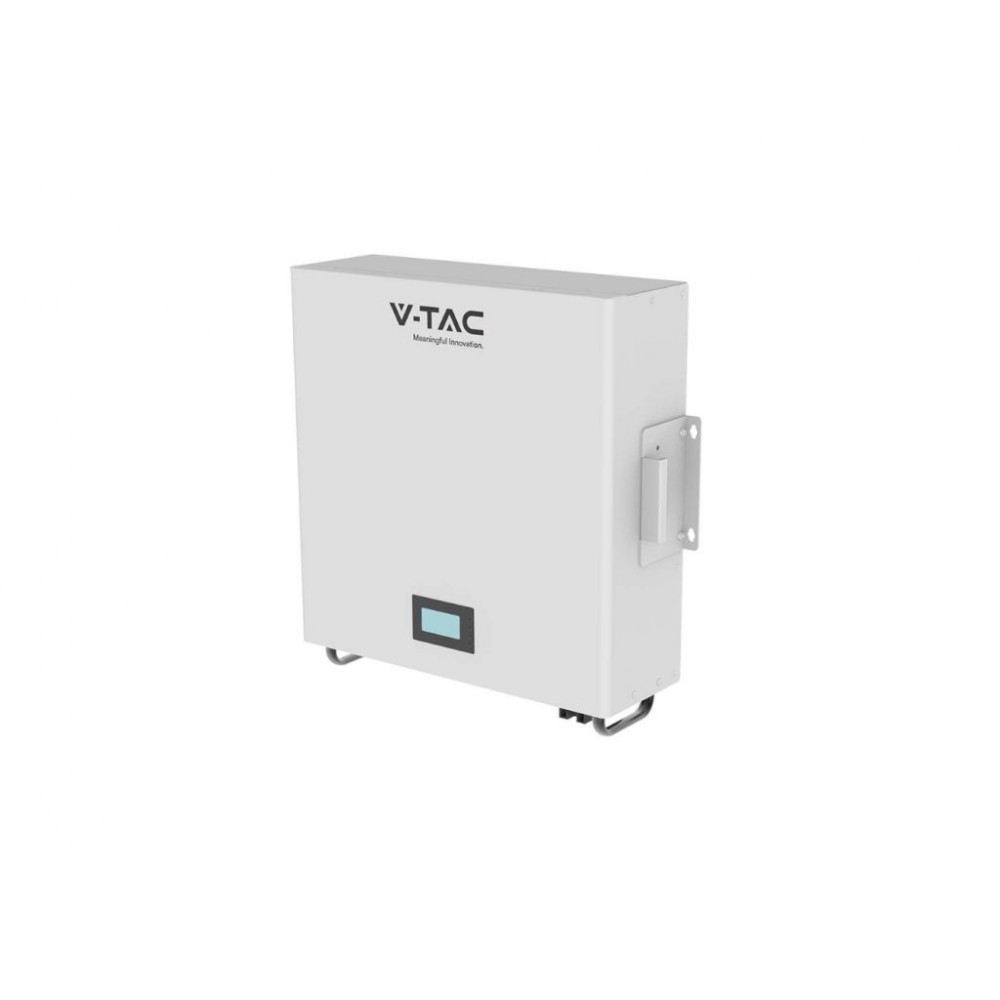 Накопичувач енергії V-TAC використовує літієву батарею з напругою 51,2 В та ємністю 100 Ач, призначену для фотоелектричних інверторів. Він здатний зберігати електроенергію до максимальної ємності 5,12 кВт·год. Продукт обладнаний повним кабелем і системою управління батареєю BMS. Є можливість розширення кількості накопичувачів до 16 штук.