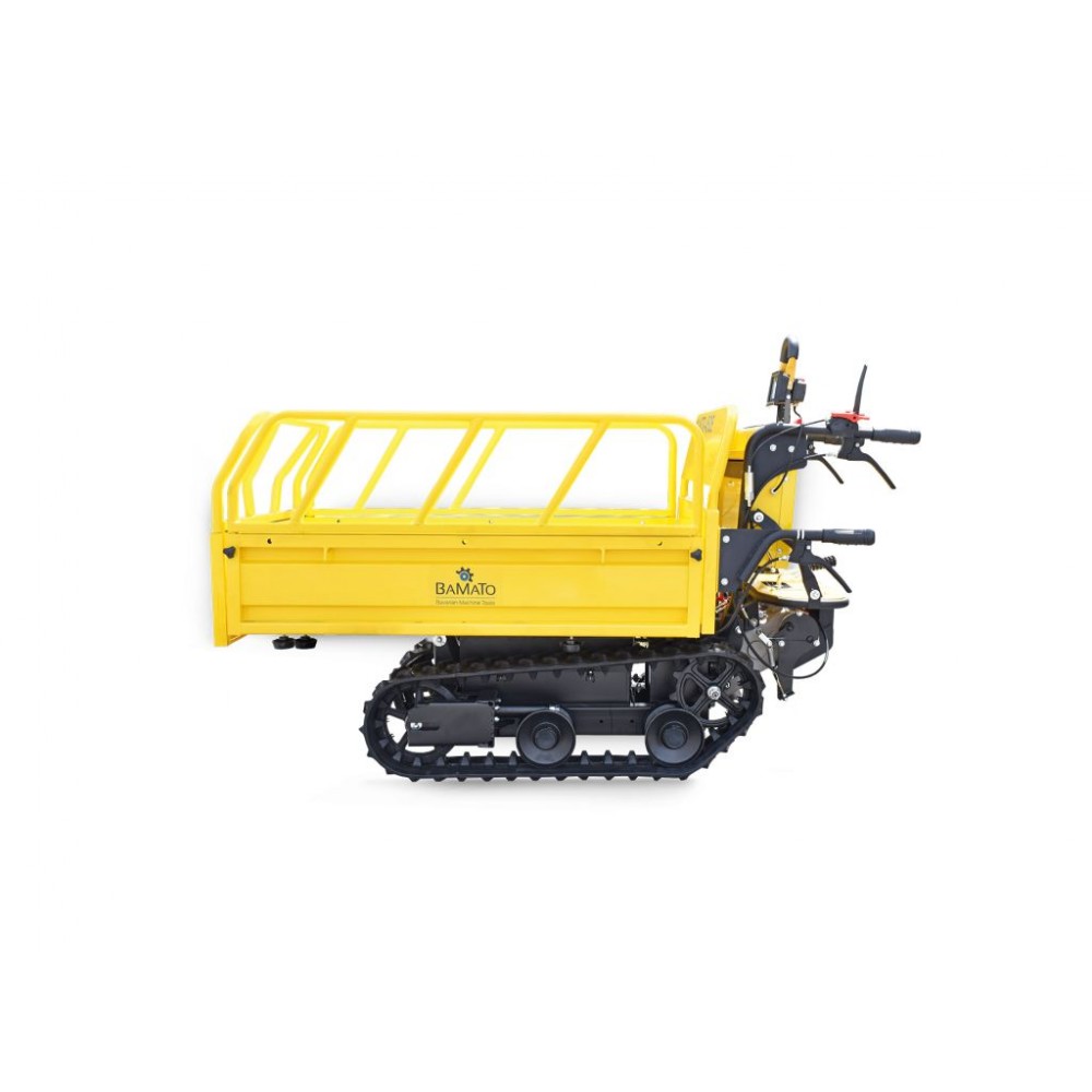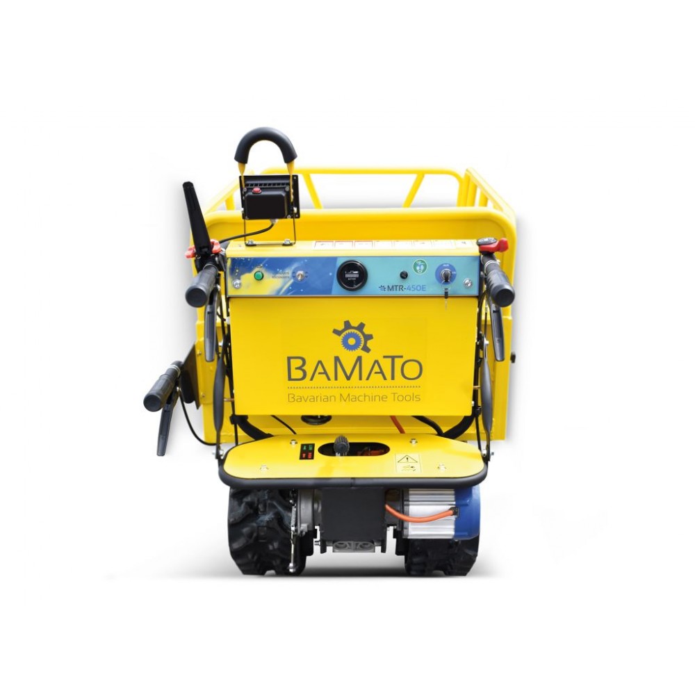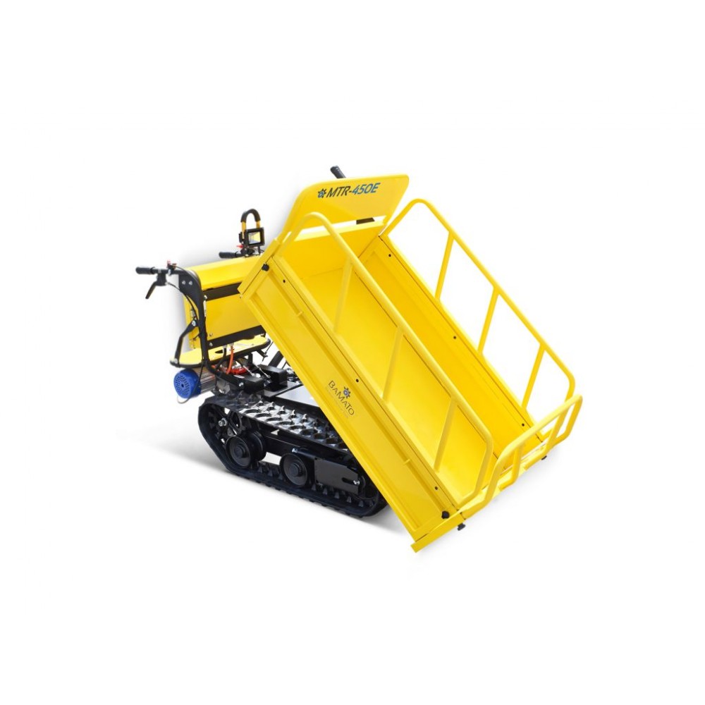 Міні-самоскид BAMATO MTR-450E на гусеничному ходу є ідеальним помічником для транспортування вантажів вагою до 450 кг. Завдяки потужному електричному приводу потужністю 800 Вт він не тільки є екологічно чистою альтернативою бензиновим або дизельним двигунам, але й вражає своєю практично безшумною роботою. Це означає, що гусеничний думпкар можна без проблем використовувати і в приміщенні.