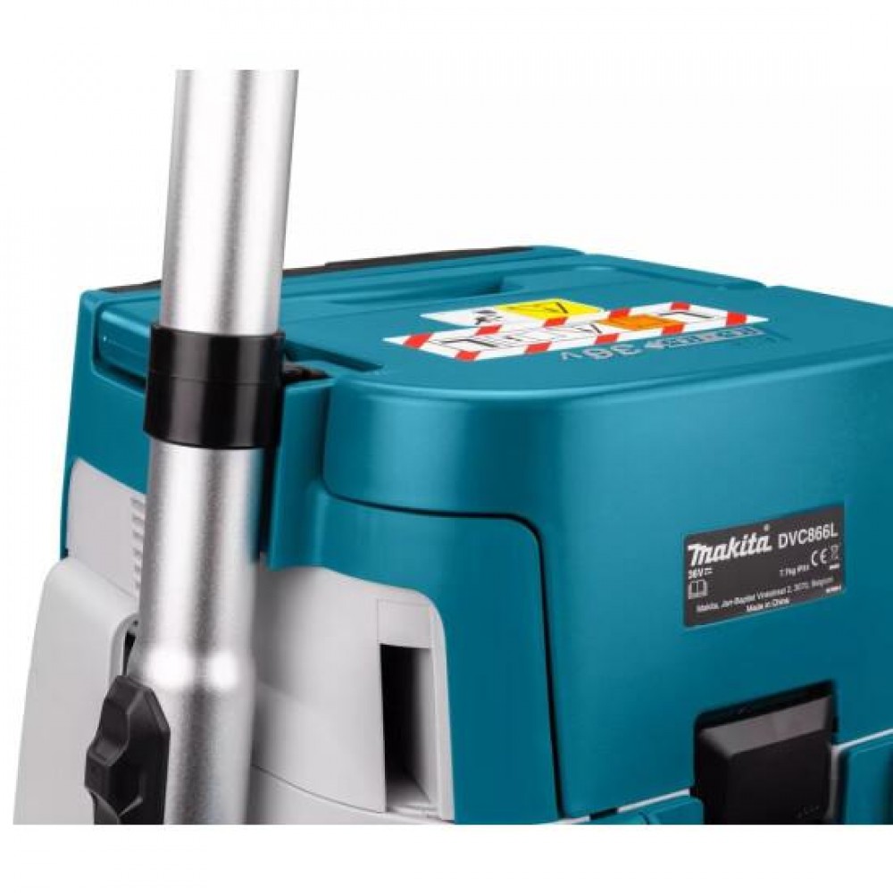 Розміри пилососа — 366 × 334 × 421 мм, вага — 8,6 кг. Makita LXT DVC156LZX1 має стійкий корпус, витримує удари і не боїться пилу. Його легко переміщати по об'єкту, встановлювати поруч із робочим місцем або транспортувати з інструментальним комплектом.