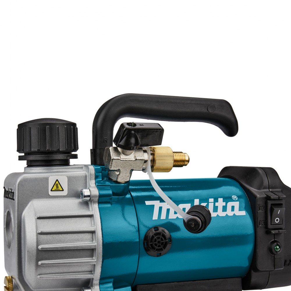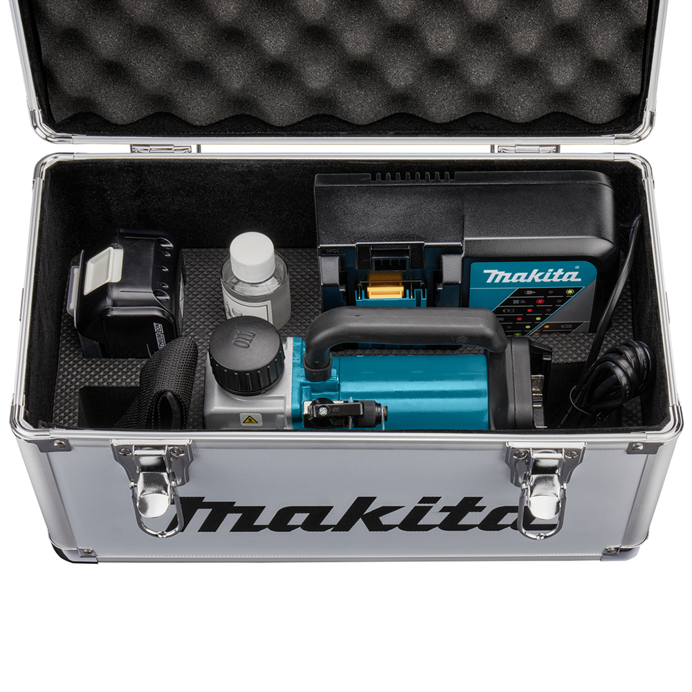 - Комплектація: Акумуляторний вакуумний насос DVP180RT: Зарядний пристрій 195584-2 / Акумулятор BL1850B (18 V / 5,0 Ач) / Ємність з маслом 150 мл / З'єднання високого тиску / Кейс