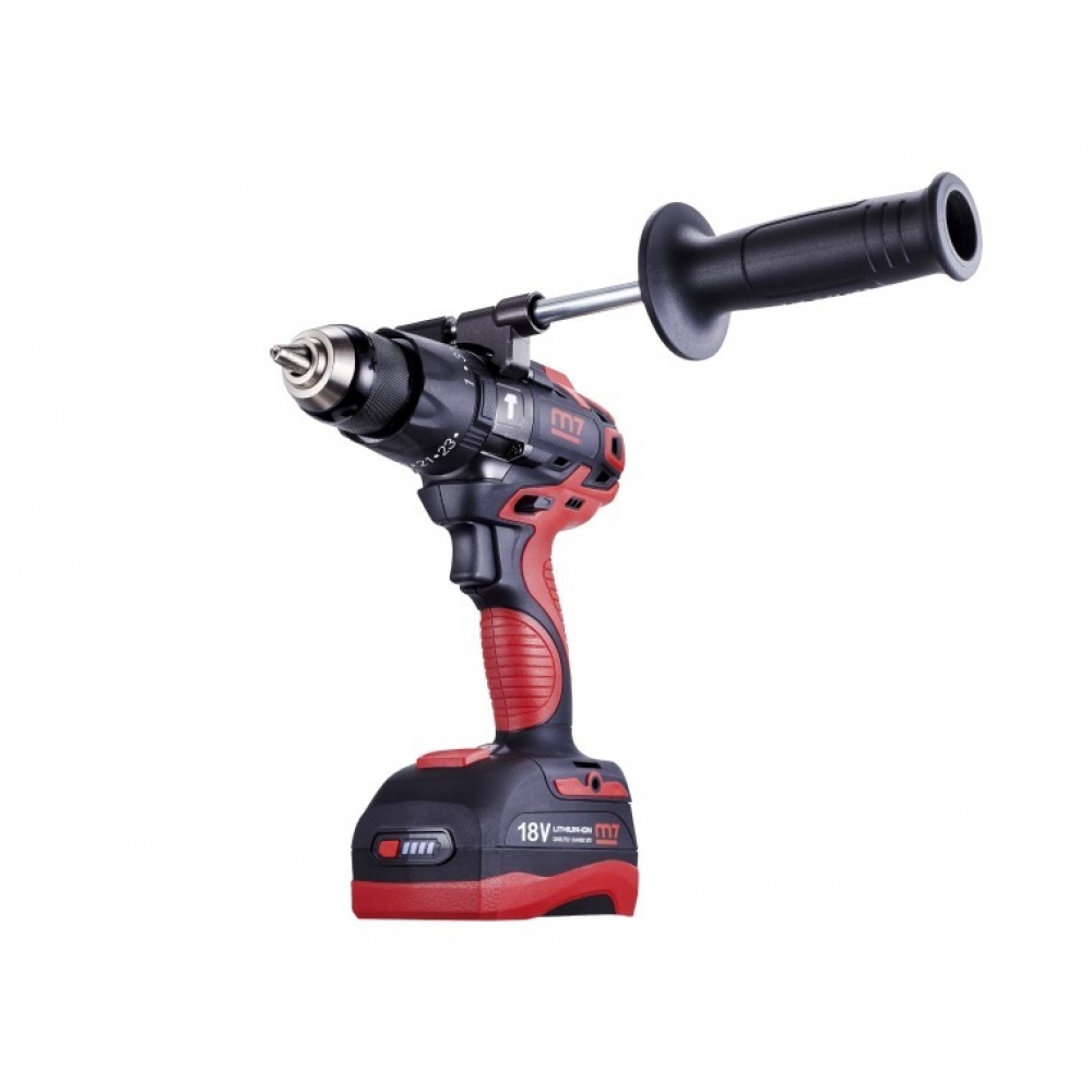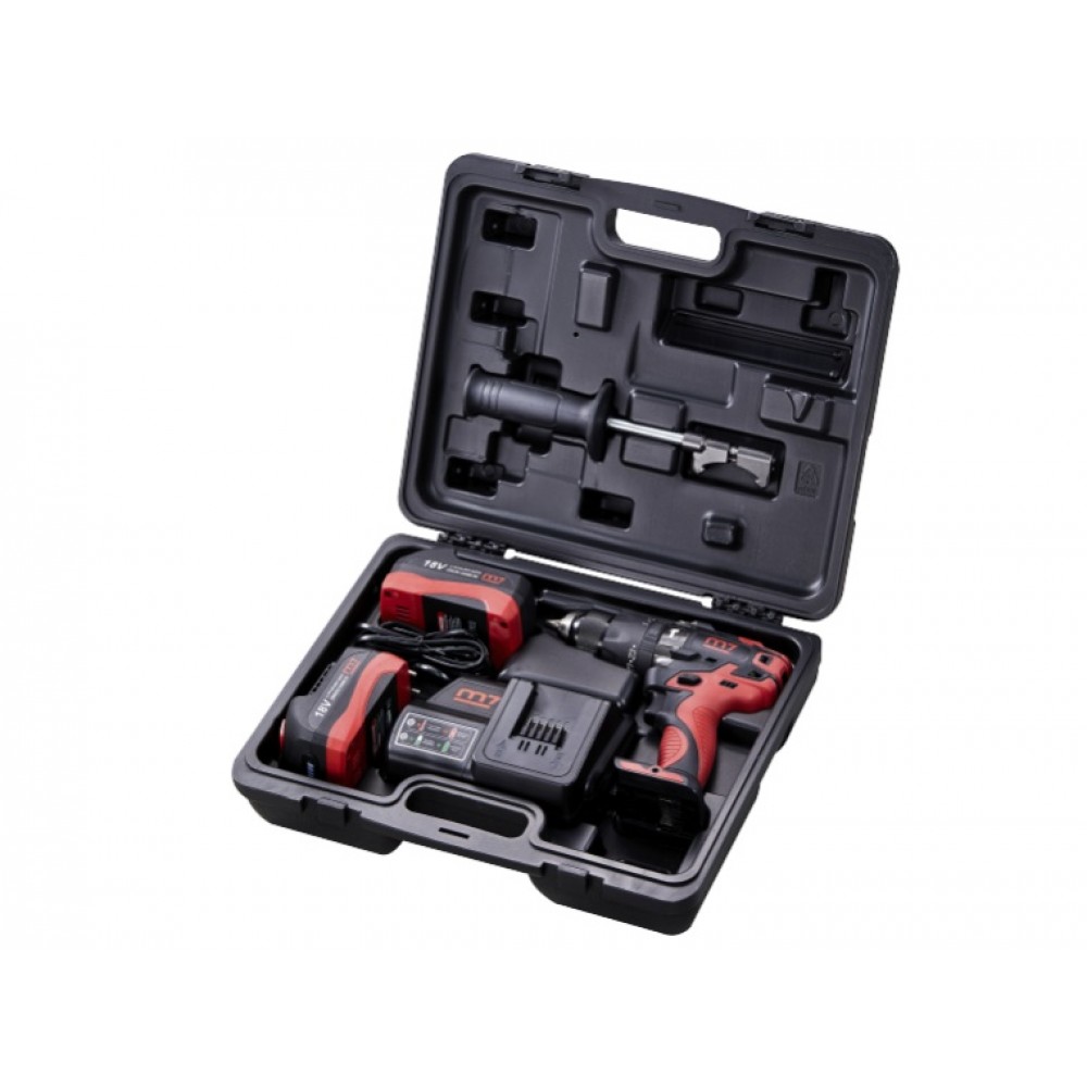 Mighty Seven DH-20502 - ударний безщітковий дриль-шурупокрут підвищеної потужності, який призначається для постійного професійного використання. Живиться від Li-Ion акумуляторів з напругою 18 В. В шуруповерт вбудований двошвидкісний редуктор з металевими шестернями, що значно збільшує термін служби інструменту. На першій швидкості 450 об/хв DD-20502 розвиває крутний момент до 79,1 Нм, що дозволяє закручувати кріплення. На другій швидкості 1750 об/хв користувач може ефективно свердлити різні матеріали: дерево, метал і тд. В інструменті присутній режим ударного свердління для робіт з бетоном та цегляною кладкою. Вбудована захисна електроніка оберігає акумулятор від перевантаження, перегріву і глибокої розрядки. Шурупокрут комплектується 13 мм швидкозатискним металевим патроном з автоматичним блокуванням шпинделя. Шурупокрут Mighty Seven DH-20502 поставляється в фірмовому захисному кейсі з додатковою ручкою, 2 акумуляторами ємністю 5 А*год і зарядним пристроєм.Характеристики Акумуляторний ударний шурупокрут Mighty Seven DH-20502 безщітковий (DH-20502)