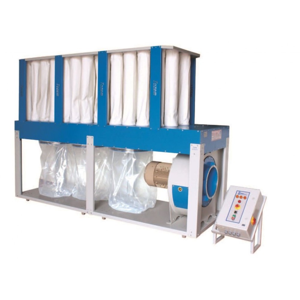 Пил і відходи від деревини збираються в поліетиленові прозорі мішки, які герметично закріплені металевими хомутами на корпусі аспіраційної установки.