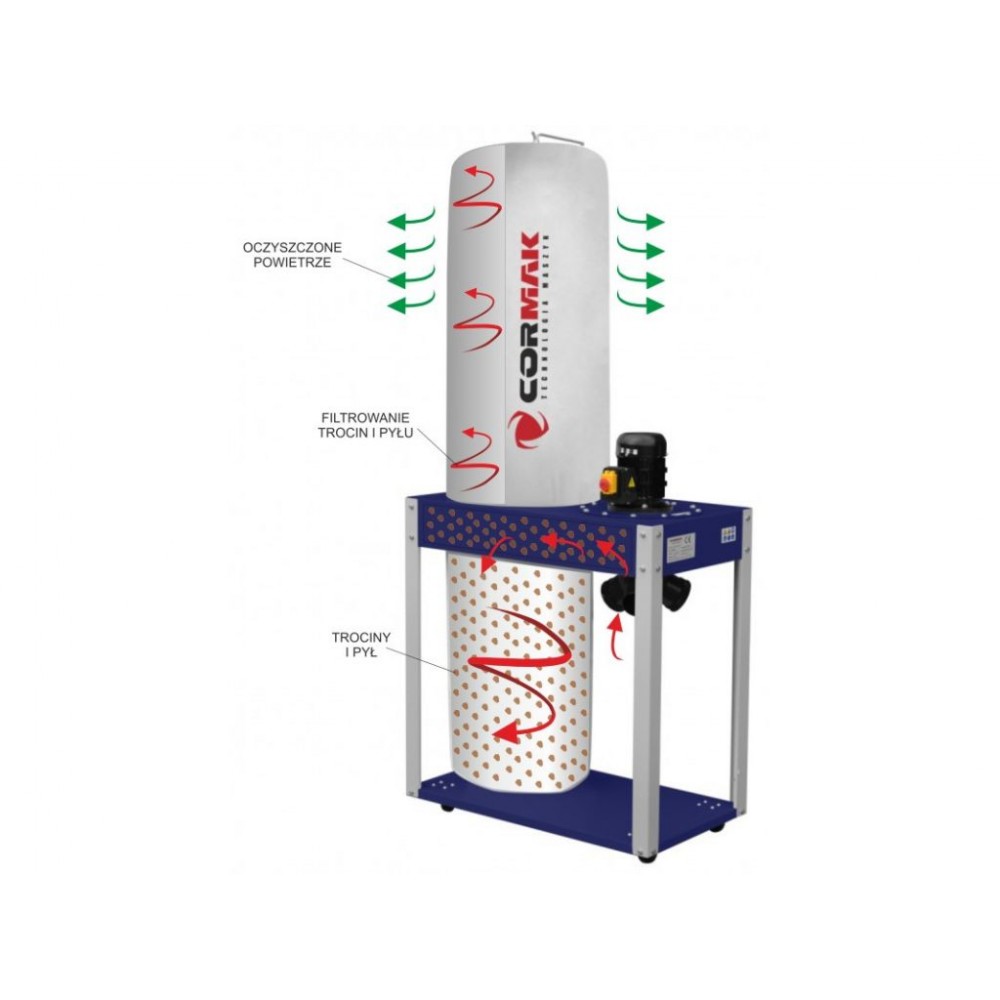 Вакуумна тяга повітря відмінно всмоктує надлишки тирси, що утворюються під час роботи верстата, які утворюються при механічній обробці деревини. патрубок під витяжку повертається на 180 °.