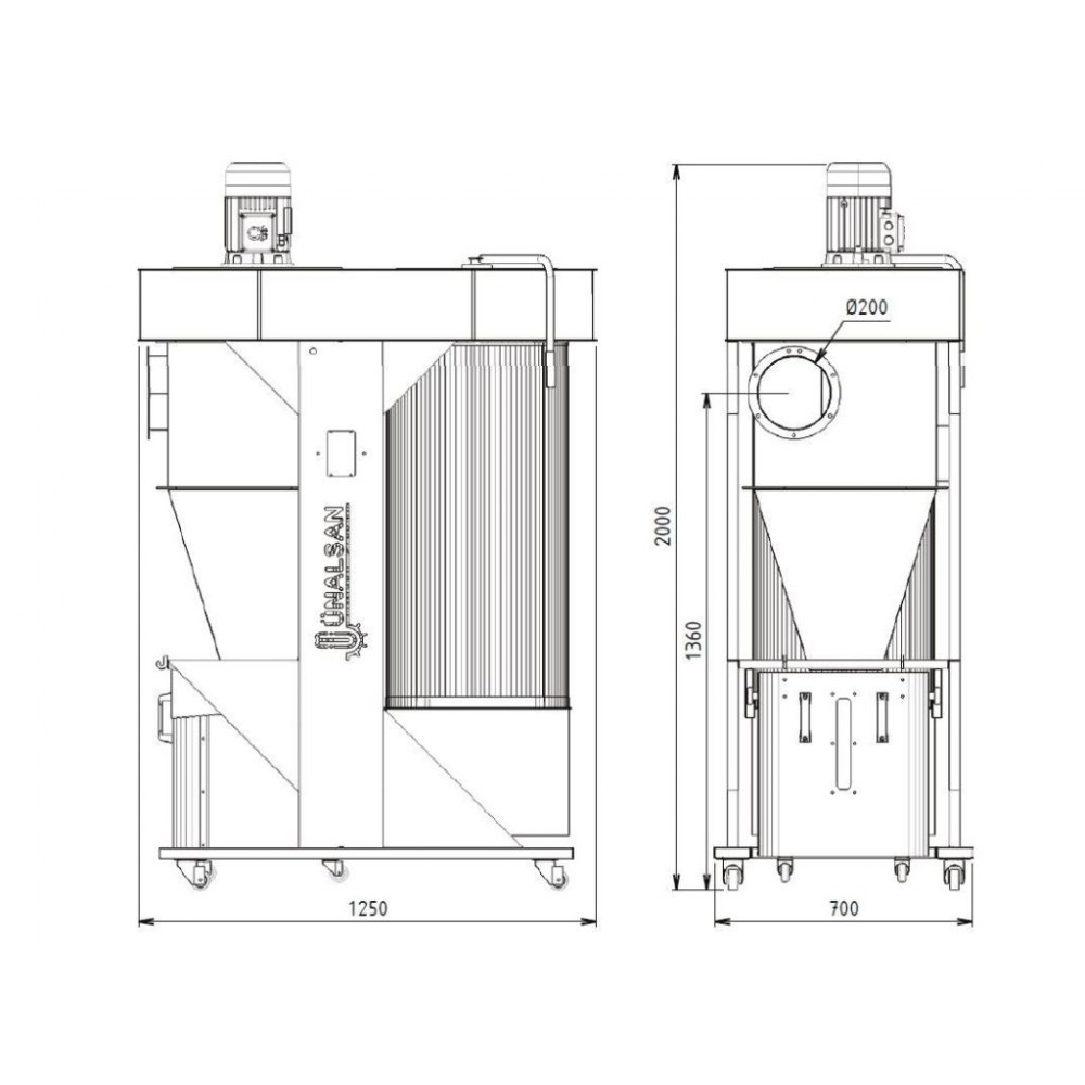 Аспірація-циклон Unalsan UNS 421 – продуктивна установка типу циклон з подальшим високим ступенем очищення повітря фільтром типу "гармошка".