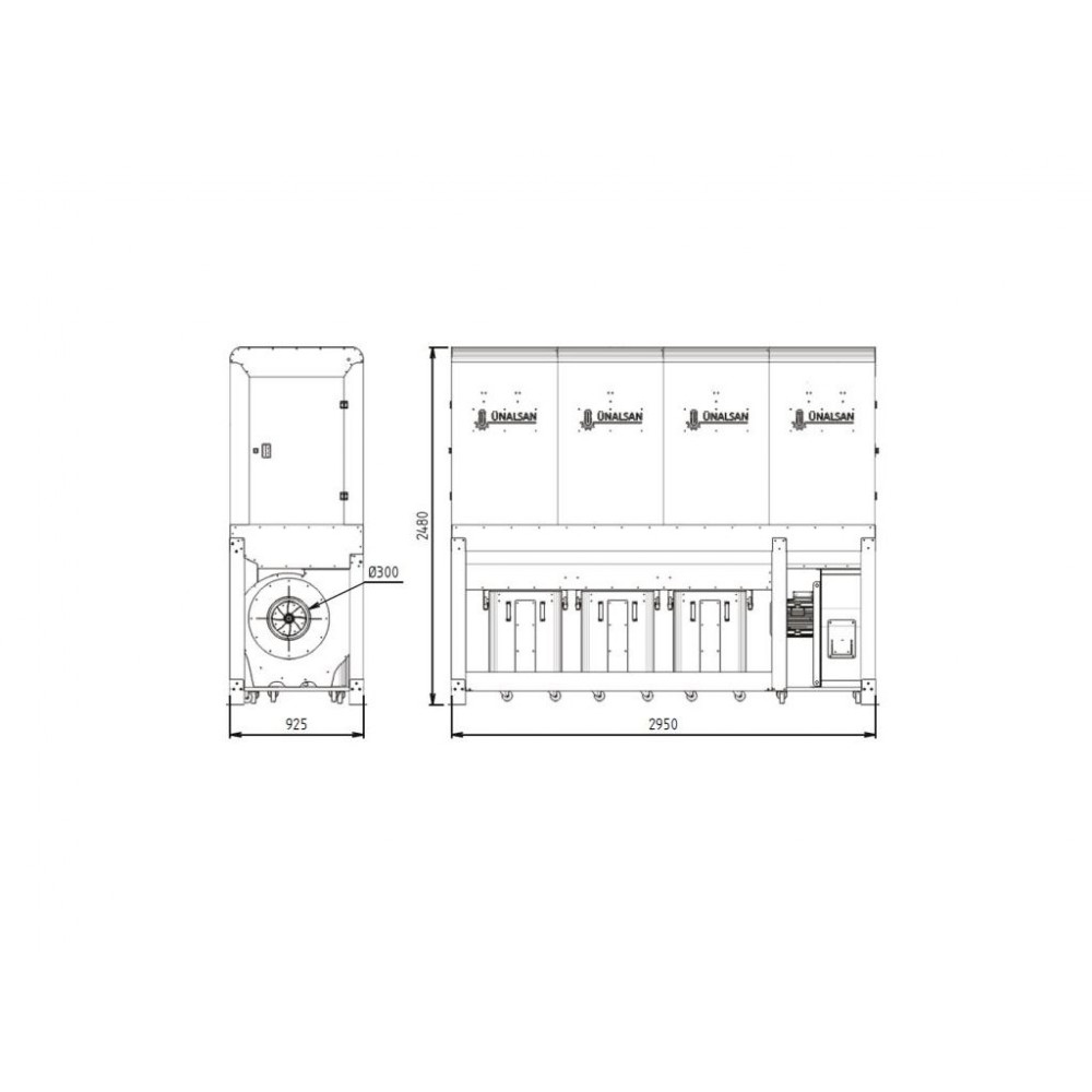 Пил і відходи від деревини збираються в викатні металеві бункери, які також встановлені на поворотних пластикових колесах, для зручності їх подальшого спорожнення. На кожному бункері є великі оглядові вікна для візуального контролю їх наповнення.