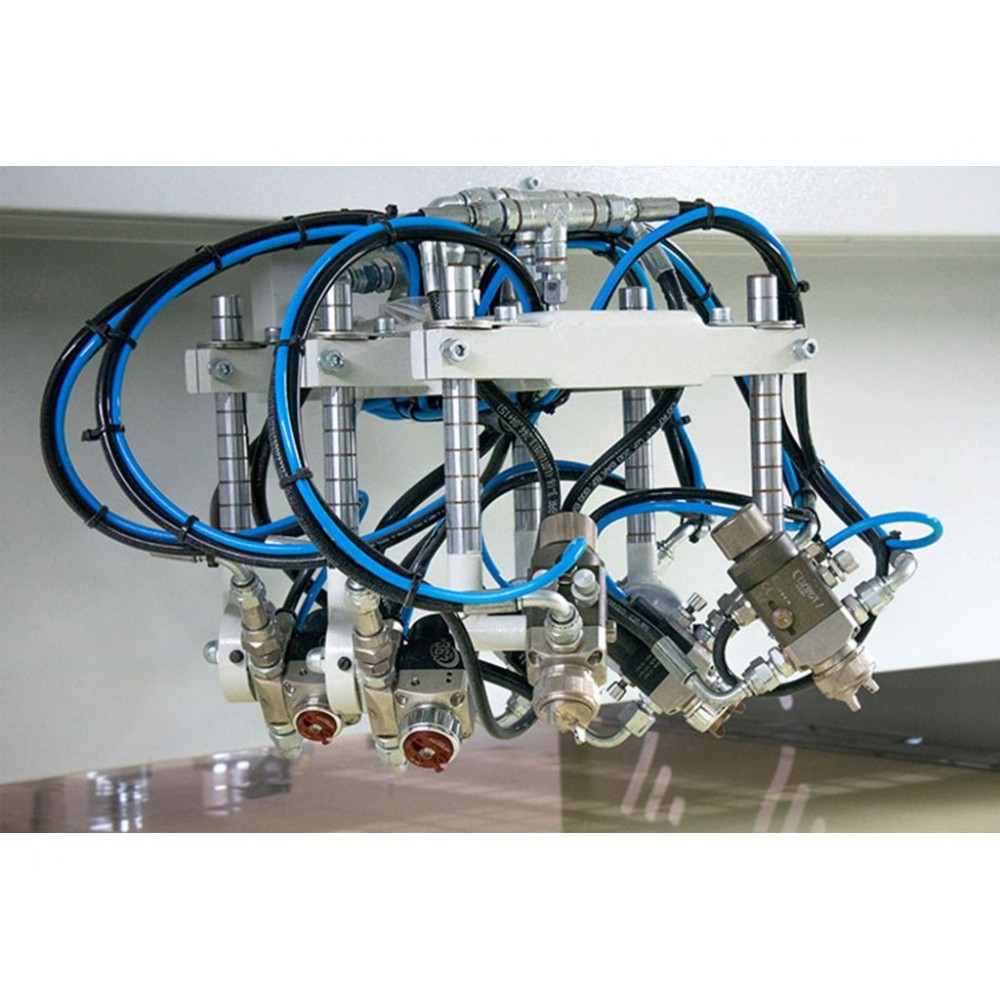 8 додаткових фарборозпилювачів всього 12 фарбопультів і 2 додаткових фарборозпилювальних насоси. Всього 3 фарборозпилювачі можуть бути підключені до машини. Це дозволяє швидко і легко переходити між 3 різними кольорами.
