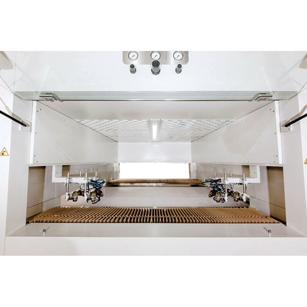 У машині для забарвлення дерева KR BM-1700 повітря, профільтроване за стандартом EU5, лінійно вдавлюється в шафу. Брудне повітря в камері пропускається через фільтр-гармошку і виштовхується назовні. Таким чином, внутрішній простір салону і вентиляційні канали залишаються чистими.