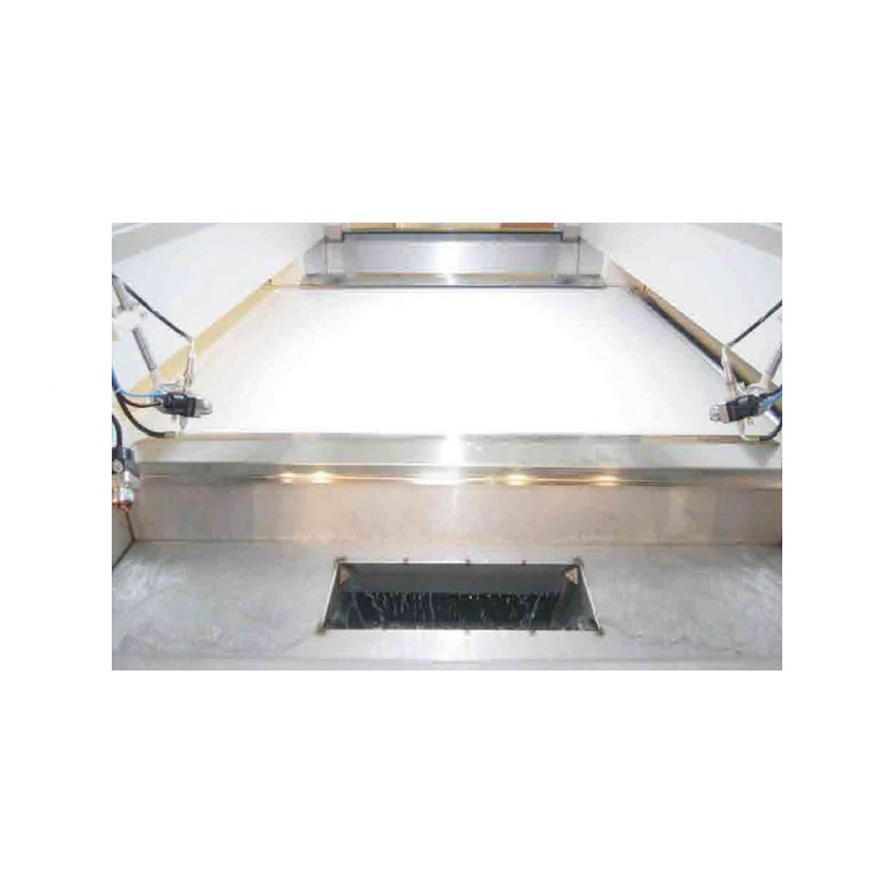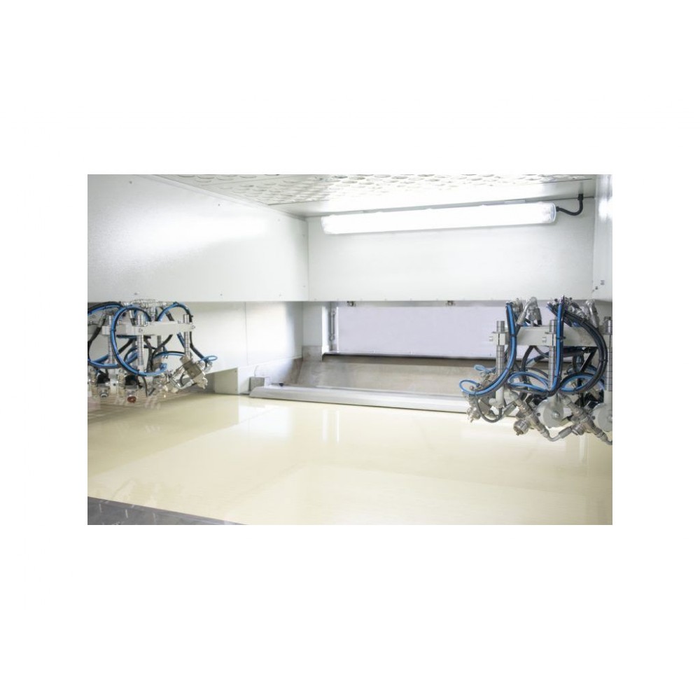 Продукція безпечно забарвлюється по обидва боки за допомогою системи очищення стрічки в машині для фарбування дерева KR BM 1700 S. Виріб ніколи не стосується брудної стрічки. В системі очищення стрічка, яка набагато економічніша, ніж її аналоги, за 8 годин роботи забруднюється всього 12 літрів розчинника.