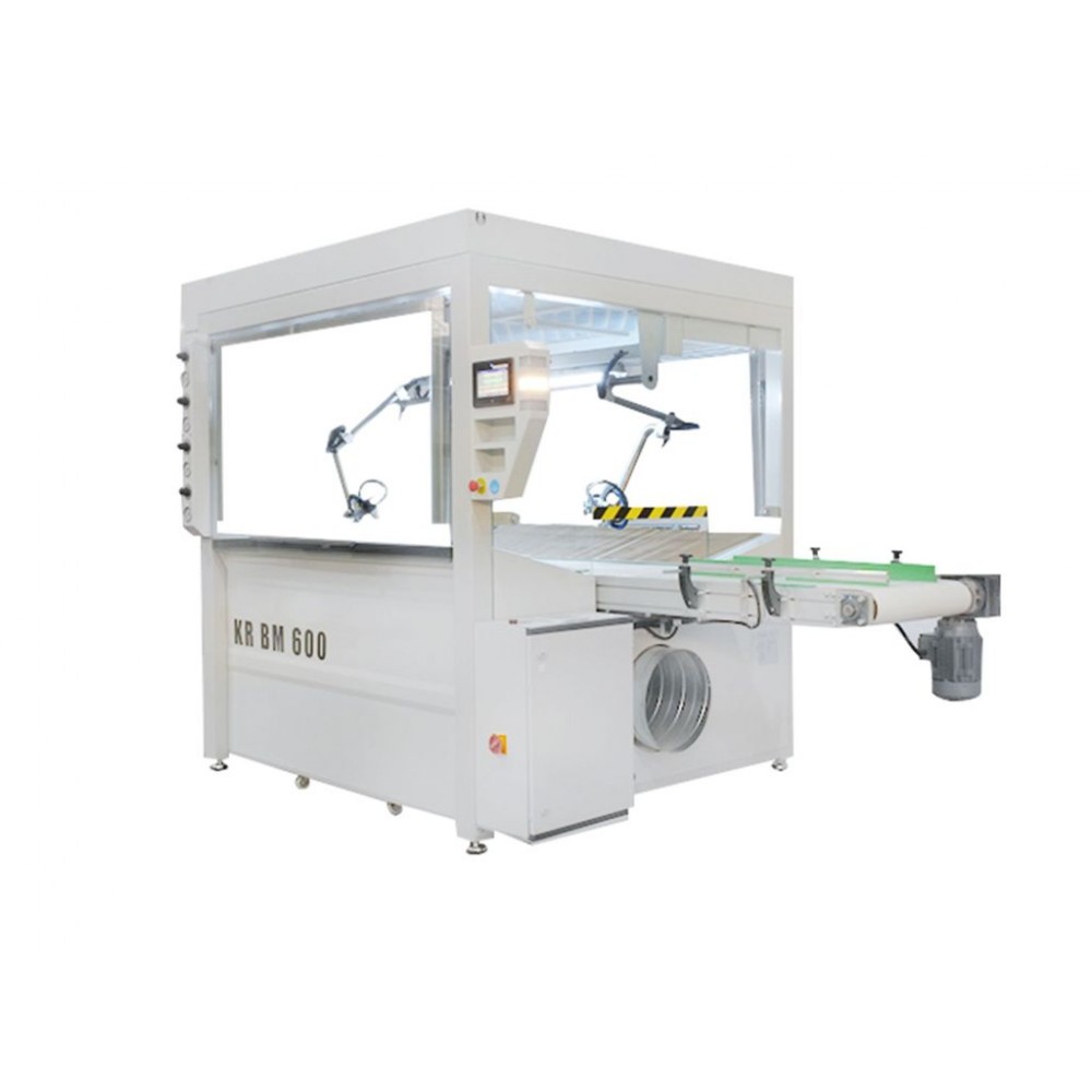 Машина для фарбування дерев'яних профілів KR BM 600 - це машина для фарбування профілю нового покоління, яка відрізняється від своїх аналогів широкою кабіною, економічною системою відновлення фарби і можливістю інтеграції в автоматичні системи завантаження і вивантаження.