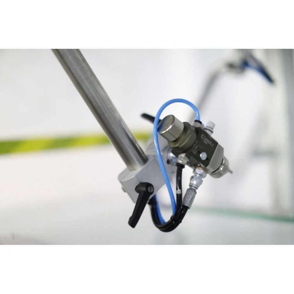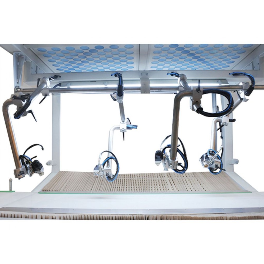Автоматична машина для забарвлення профілю KR BM 600 має 1 мембранний насос і 4 автоматичних пістолета-розпилювача низького тиску з регульованими положеннями, які входять в стандартну комплектацію.
