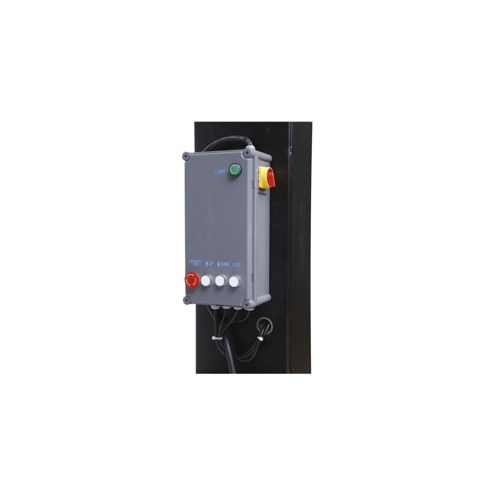 Двоколонна конструкція з нижньою балкою характеризується високою стійкістю та якісною збіркою. Панель керування з 3 кнопками (підйом, опускання, опускання в нижнє положення) робить управління підйомником зручним і простим, а автоматична активація запобіжних засувок полегшує роботу і робить її безпечнішою. Цей автоматичний підйомник для авто має 4 регульовані телескопічні лапи, що дозволяє адаптувати його до різних точок підхвату та розмірів транспортних засобів.