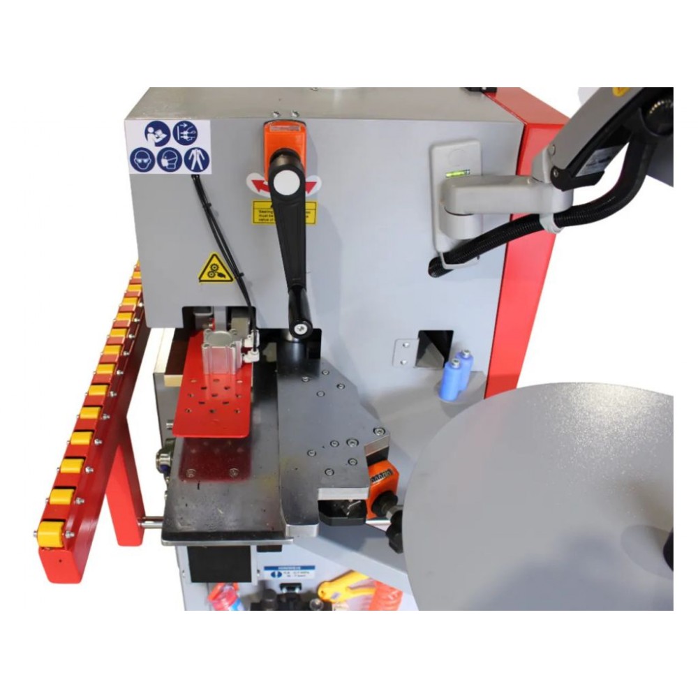 - Складається з двох пресувальних роликів, що забезпечують, надійну фіксацію кромочного матеріалу на торець заготовки.