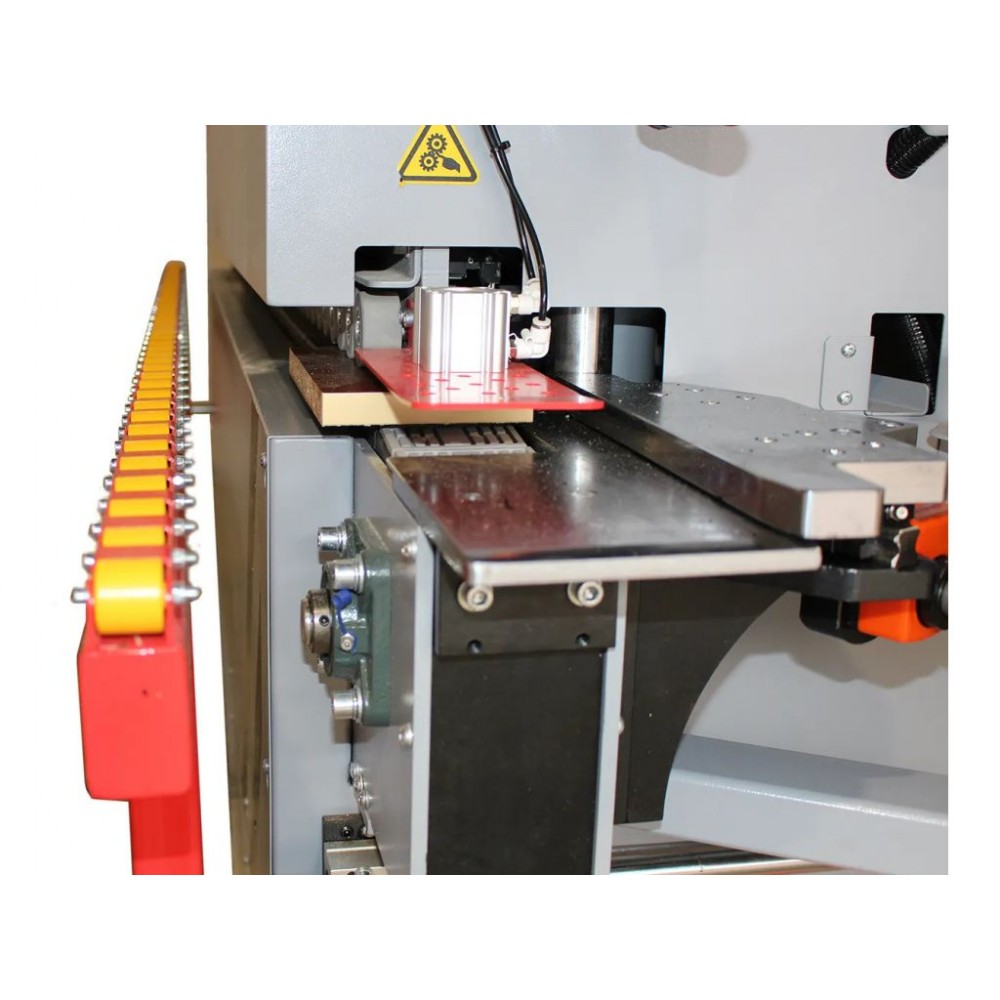 - Зносостійкі черевики у поєднанні з гумовими притискними роликами забезпечують точне транспортування заготовок.