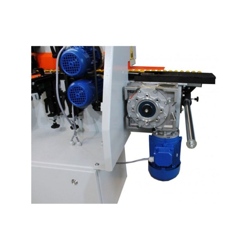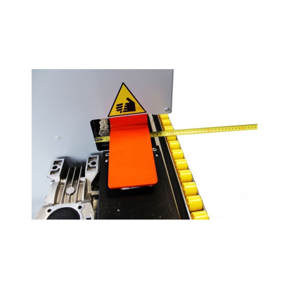 ПОДАЮЧИЙ КОНВЕЄР Деталь подається ланцюговим конвеєром з гумованими накладками. Ширина накладок 73 мм. Привід-мотор-редуктор 2,2 кВт VARVEL.
