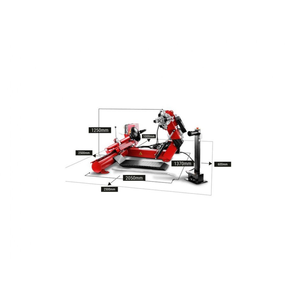 Потужність роторного двигуна становить 1,8 кВт, потужність двигуна гідравлічного насоса - 1,5 кВт. Верстат працює від трифазної мережі. При високій потужності і широких можливостях обладнання просте в експлуатації і тихе в роботі (рівень шуму - менше 70 дБ), тому робота з ним зручна і комфортна. Цей автоматичний шиномонтажний верстат для вантажівок відмінно підійде для великих автосервісів, де потрібна висока швидкість і продуктивність роботи.