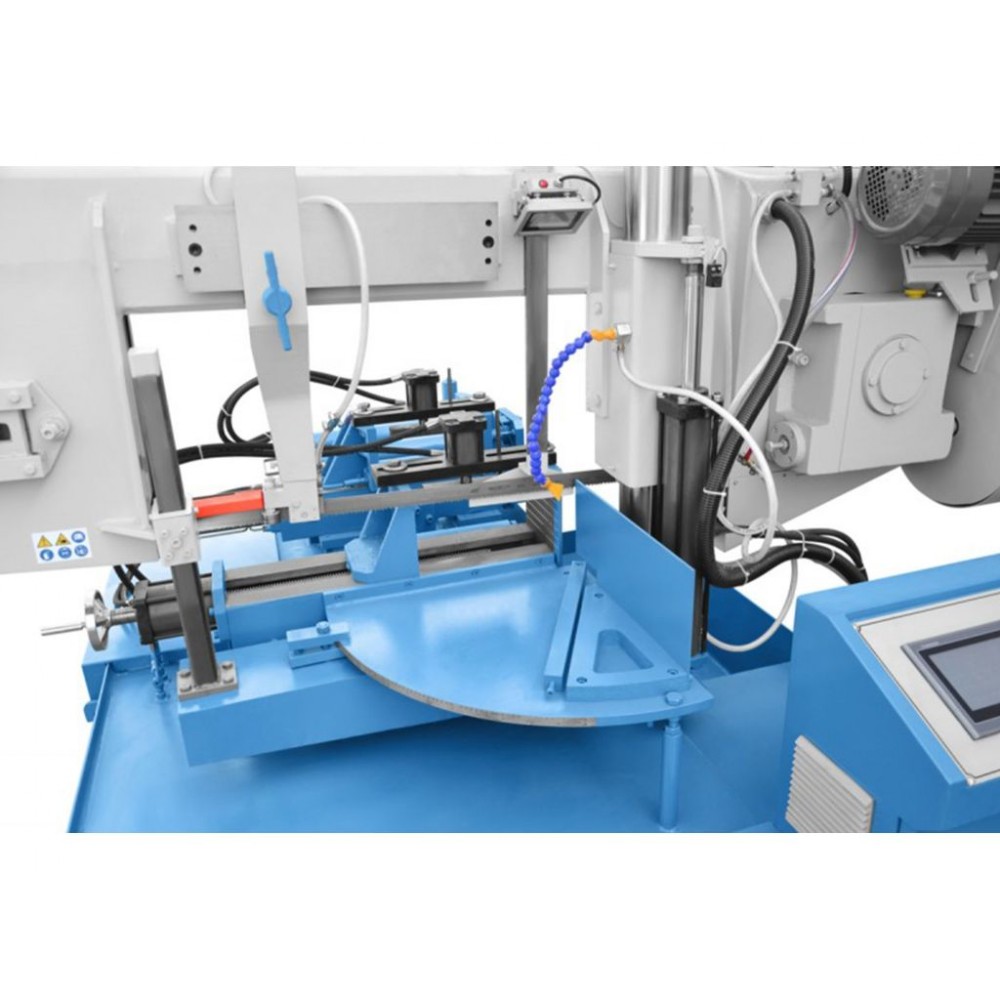 Консоль верстата виготовлена з литого чавуну. Привід ріжучого полотна заснований на двигуні, керованому інвертором, що забезпечує плавне регулювання у великому діапазоні швидкостей. Гідравлічний натяг полотна забезпечує отримання оптимальних умов роботи стрічки. У разі поломки полотна верстат зупиняється автоматично. Точне ведення полотна забезпечують напрямні, що складаються з підшипників, напрямних та вкладишів із твердих сплавів. Максимальні параметри різання та тривалий термін служби полотна забезпечує система СОЖ та щітка для чищення.
