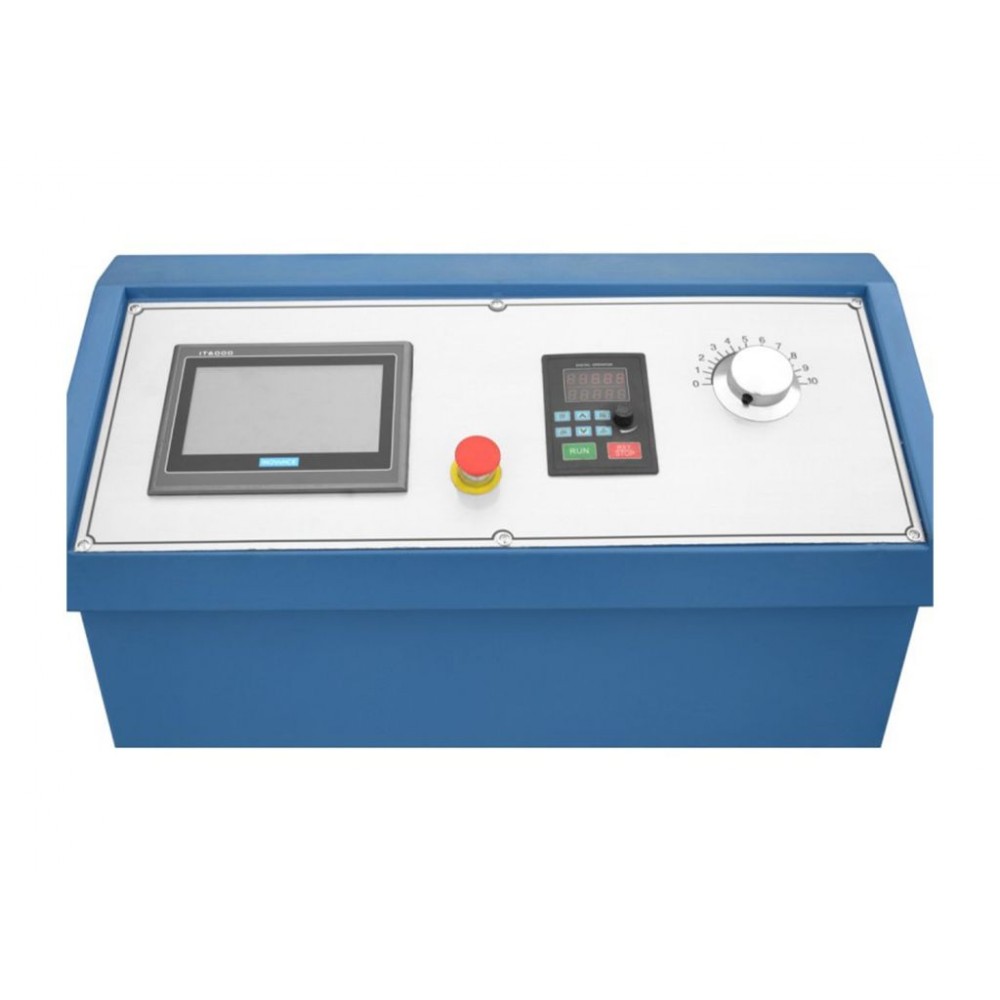 Гідравлічна система подачі матеріалу забезпечує повністю автоматичний цикл роботи верстата. Контролер оснащений РК-дисплеєм. Максимальна довжина подачі матеріалу становить 500 мм, з точністю +/- 0,2 мм.