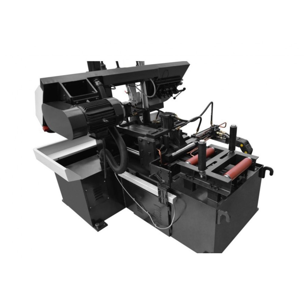 На стрічково-пильному верстаті встановлені подвійні лещата, одні використовуються для затискання при розпилюванні, другі для подачі заготовки на заданий розмір. Довжина подачі контролюється ультрафіолетовим датчиком руху, який контролює нульову точку та величину переміщення заготовки.