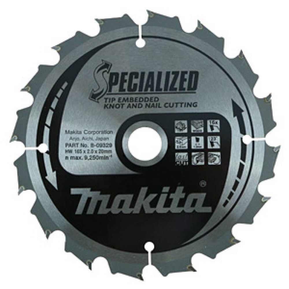 Опис B-09335 MAKITA Пиляльний диск для деревини з цвяхами SPECIALIZED 185x15,88 мм 16 зуб