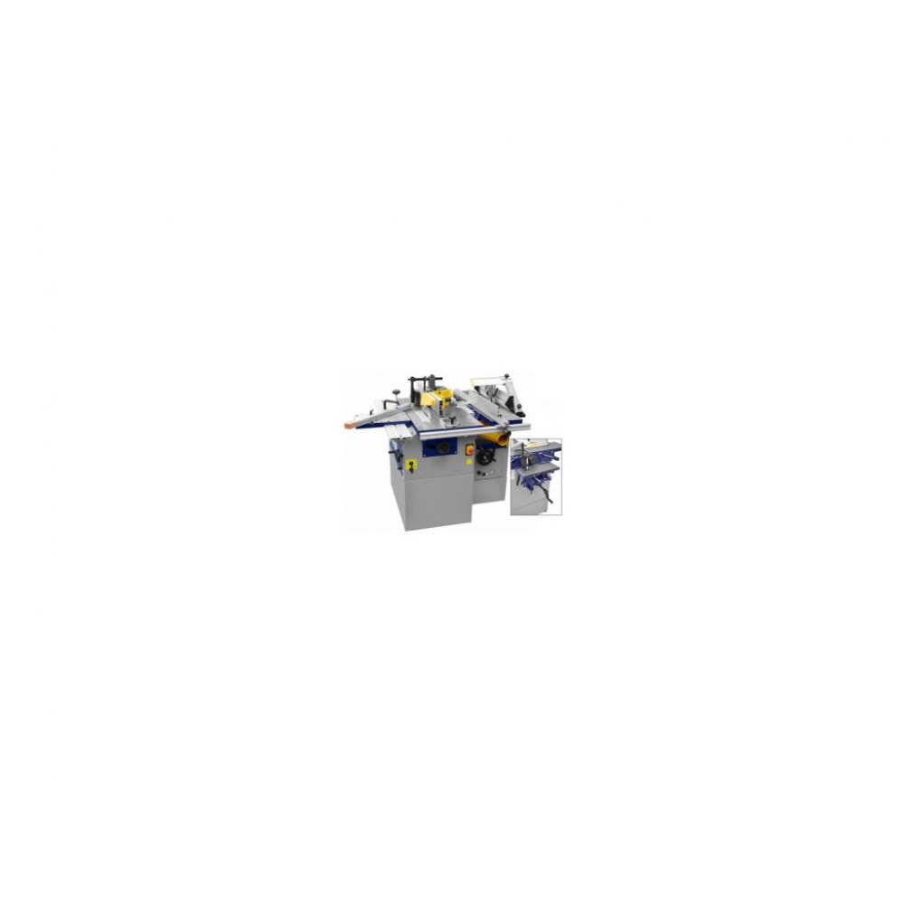 Верстат дозволяє працювати з усіма породами деревини, МДФ, ПВХ та іншими деревопохідними матеріалами. Максимальна ширина заготовки для фуганка і рейсмуса - 250 мм, висота - до 160 мм. Максимальний діаметр фрез - 170 мм, висота пропилу - до 70 мм (при куті 90°). Завдяки жорсткій станині, якісним, точним механізмам і вазі 290 кг цей комбінований деревообробний верстат 230 В забезпечує стабільність і високу точність обробки та має тривалий термін служби.