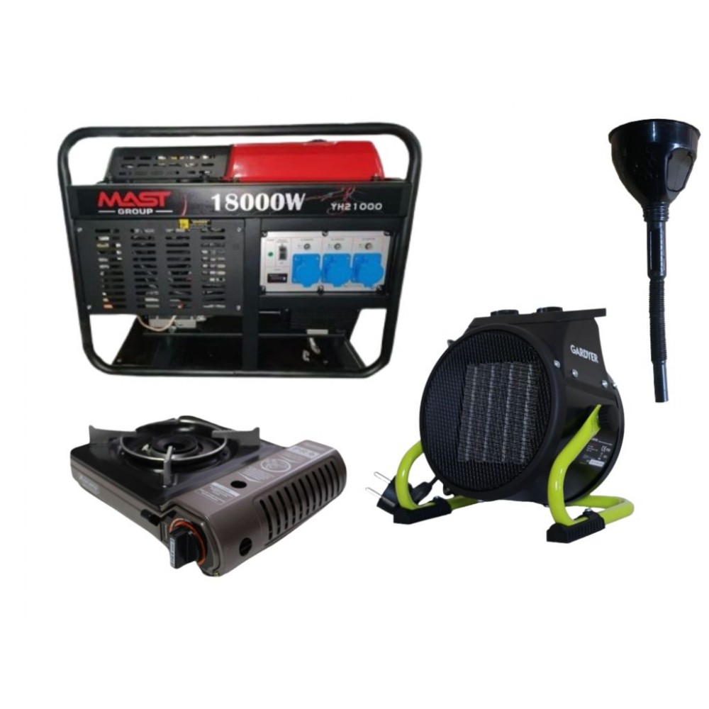 Чому варто вибрати саме бензиновий генератор MAST GROUP YH21000 + газова плитка Orcamp CK-505 + електричний обігрівач Gardyer HE2000