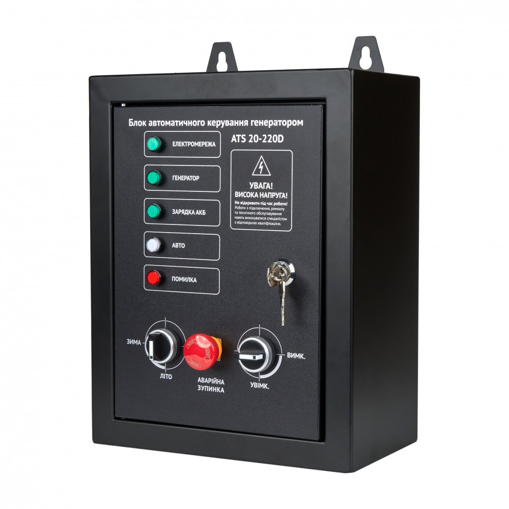 Блок керуючої автоматики Hyundai ATS-20-220D Aпризначений для перемикання живлення зі стандартною електромережою на генератор. Блок автоматично переходить на генераторное живлення при зупинці подачі електрики. Також можливий варіант переходу назад в разі відновлення живлення в мережі.