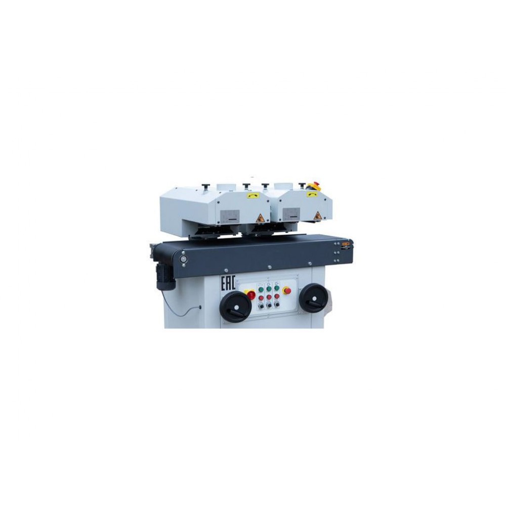 Швидкість обертання щіток становить 1500 об/хв. Конвеєр з 2 притискними прогумованими роликами забезпечує надійну фіксацію і рівномірну подачу заготовки. Швидкість подачі плавно регулюється від 0 до 10 м/хв, що дозволяє підібрати оптимальний темп обробки залежно від породи деревини та необхідної глибини структурування. Висота обробки регулюється маховиком. Цей верстат для старіння деревини оснащений 3 двигунами загальною потужністю 4,65 кВт, що гарантує стабільну роботу навіть при обробці твердих порід дерева та високих навантаженнях.