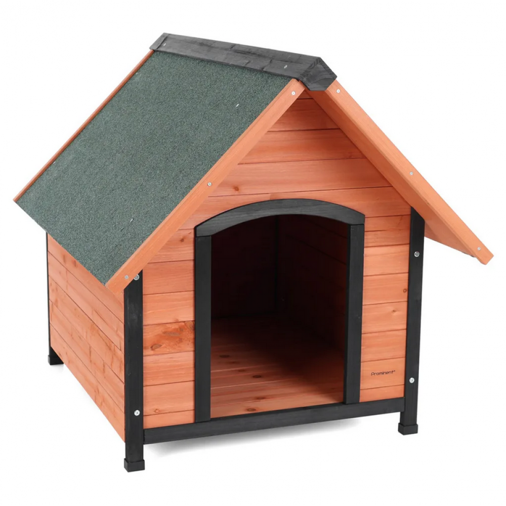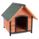 Надійна та зручна будка для собак, виготовлена з міцної деревини ялиці. Має класичну форму з високим двосхилим дахом, що не лише захищає від негоди, а й створює комфортний простір для відпочинку вашого улюбленця. Дах укритий асфальтовою черепицею, яка ефективно відштовхує вологу та витримує вплив зовнішнього середовища.