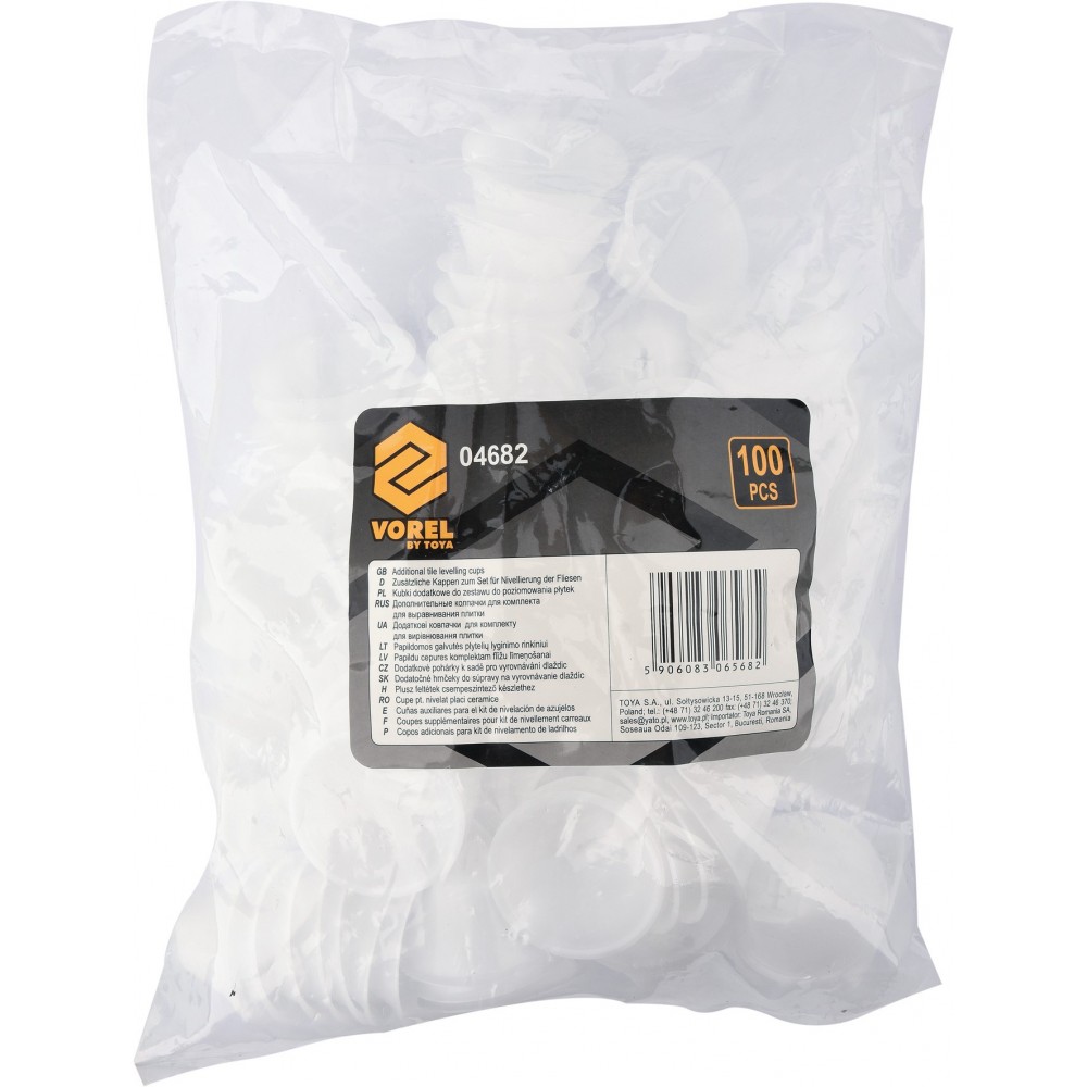Додаткові чашки для набору 04680 для системи вирівнювання плитки. Набір включає 100 чашок.