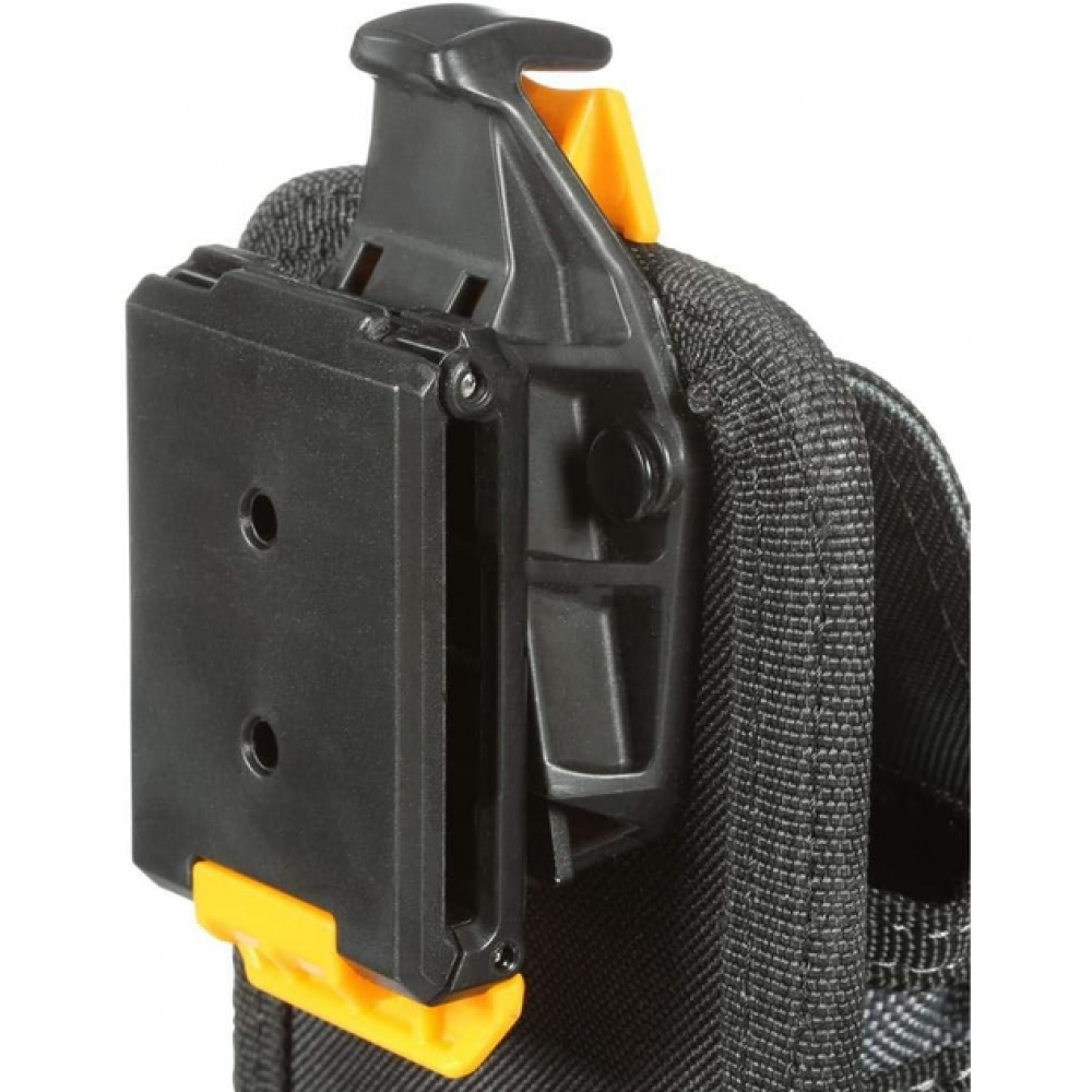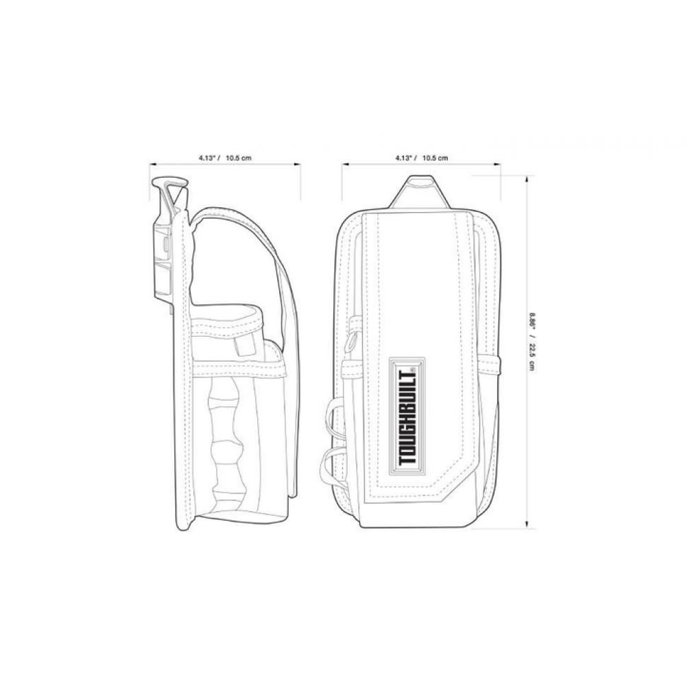 TOUGHBUILT (TB-CT-34-B) - сумка для транспортування та зберігання інструментів, виконана в розмірі 100х76х228 мм. Вона виконана з міцного шестишарового поліестеру, посилена заклепками, має жорстке дно. Конструкцією передбачено наявність безлічі кишень, одна з яких призначена для тестера дротів. Загальна вага сумки становить 300 г.