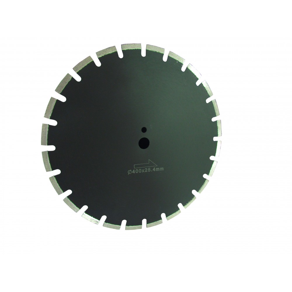 Даний диск має діаметр 400 мм для використання на швонарізчиках з посадковим отвором 25,4 мм. Сегменти висотою до 10мм гарантують тривалий термін служби.