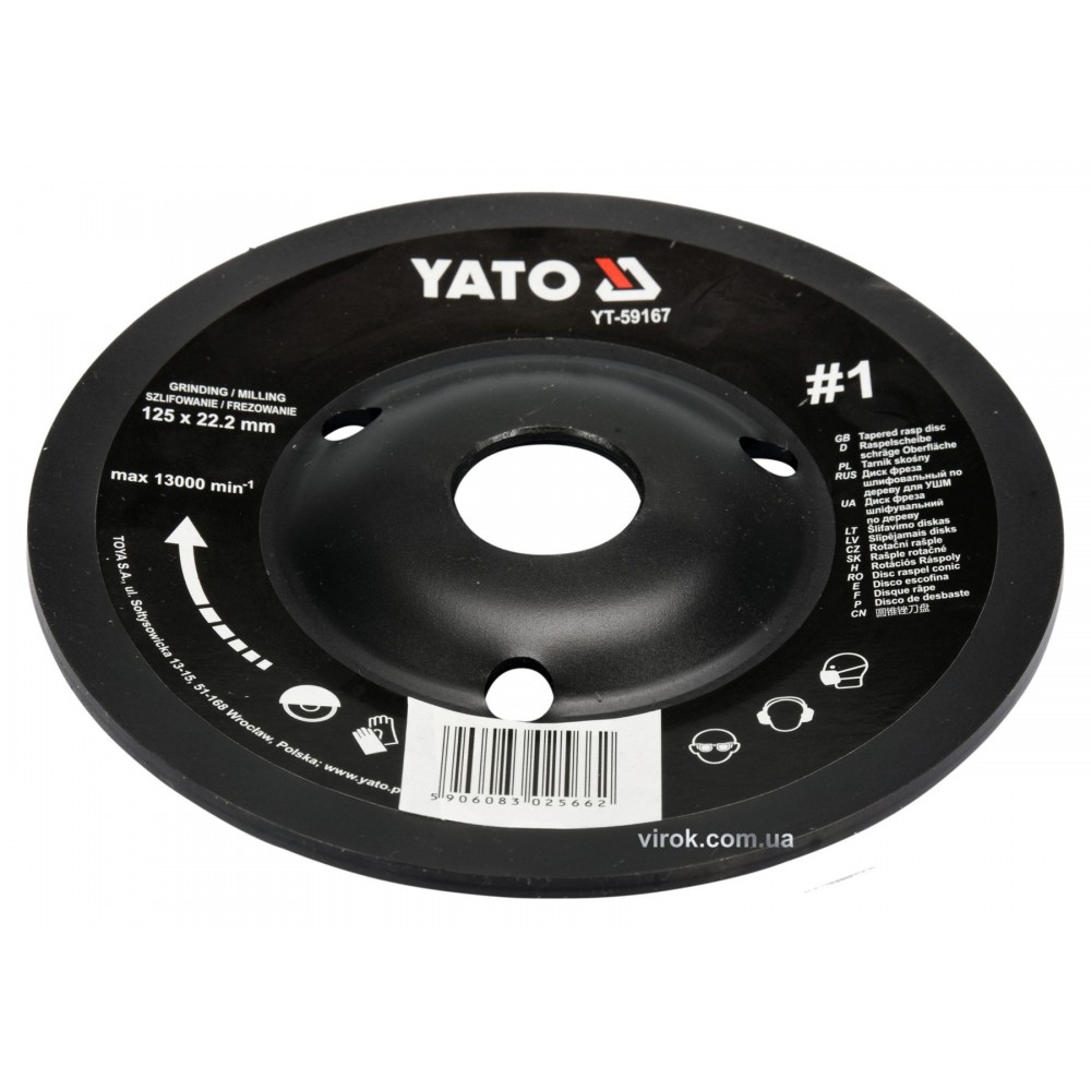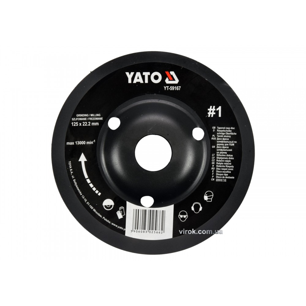 Диск-фреза шліфувальний YATO по дереву, фарбі, шпаклівці, алюмінію 125 х 22.2 мм шорсткість №1