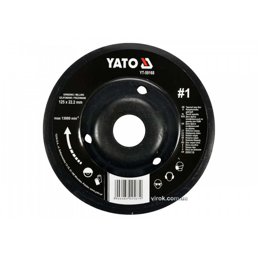 Диск-фреза шліфувальний YATO по дереву, ПВХ, гіпсу 125 х 22.2 мм шорсткість №1