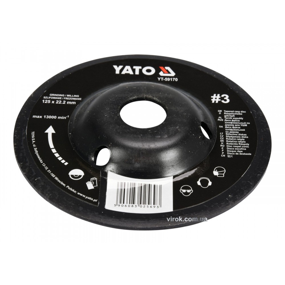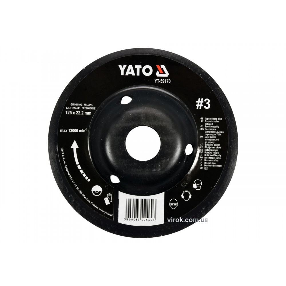 Диск-фреза шліфувальний YATO по дереву, ПВХ, гіпсу 125 х 22.2 мм шорсткість №3