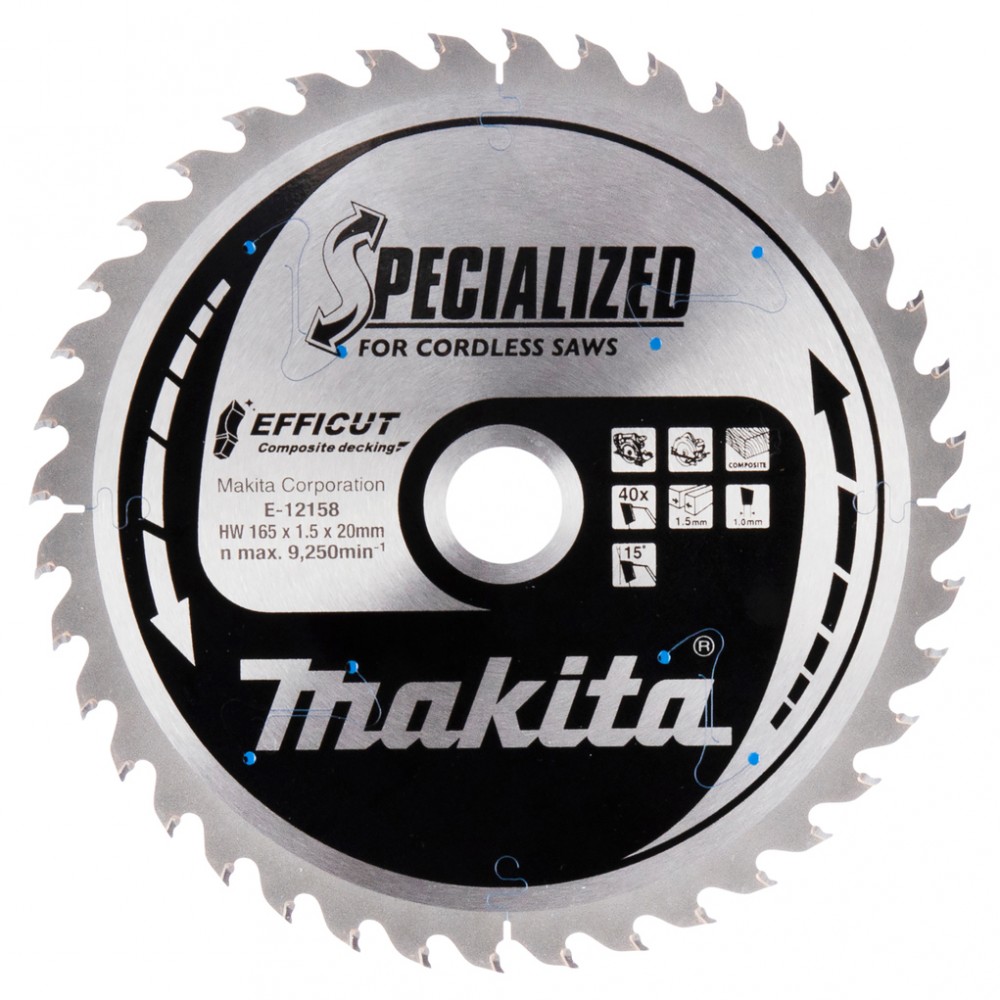 Інновації для бездоганного результату: Конструкція диска ТСТ по дереву 165 мм x 20 мм x 40T, Makita E-12158