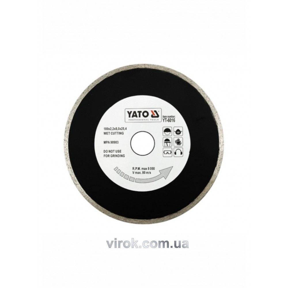 Диск відрізний алмазний для мокрої різки YATO 180 х 2.2 x 5.3 x 25.4 мм