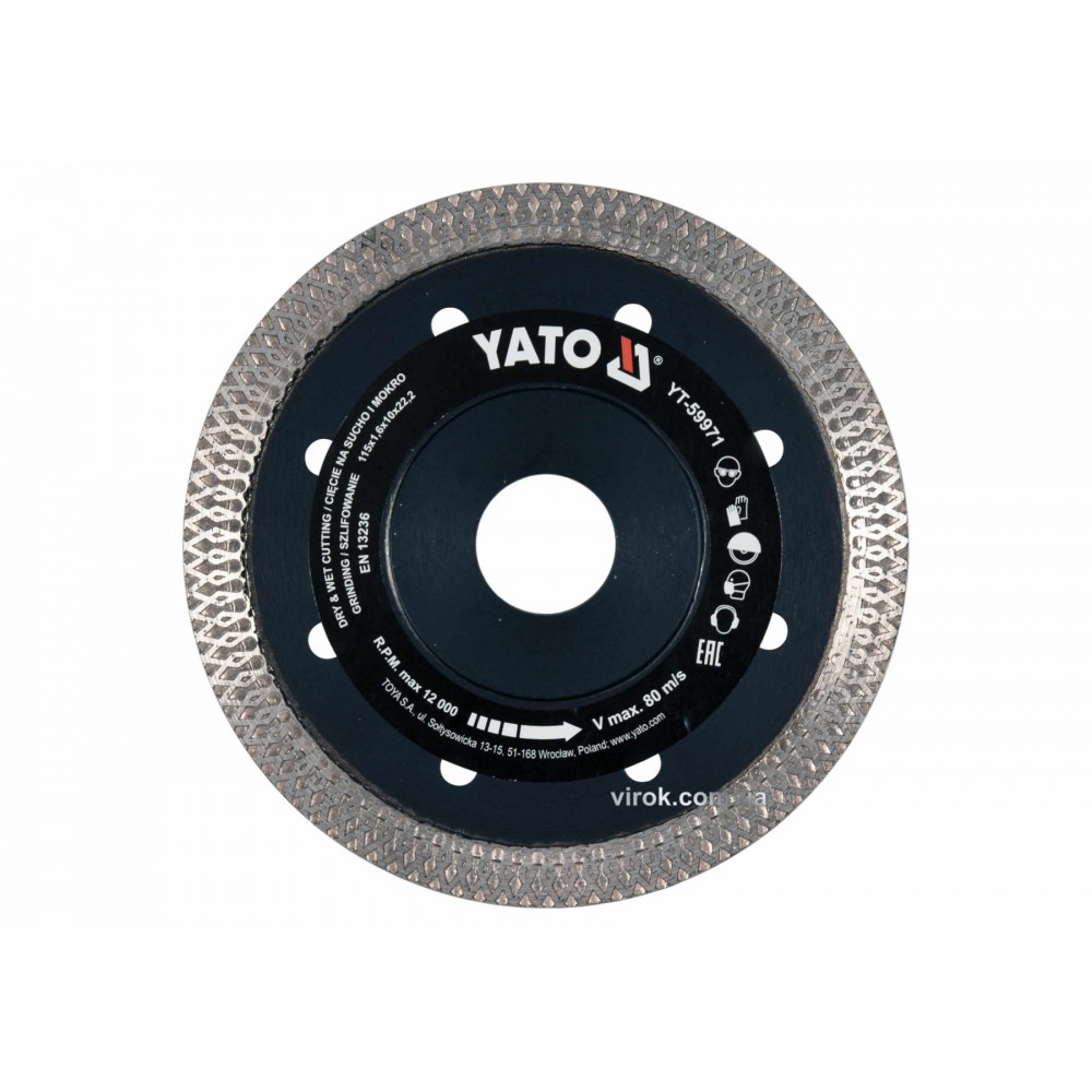 Диск відрізний алмазний по гресу, склу, кераміці для мокрої та сухої різки YATO 115 x 1.6 x 10 x 22.2 мм
